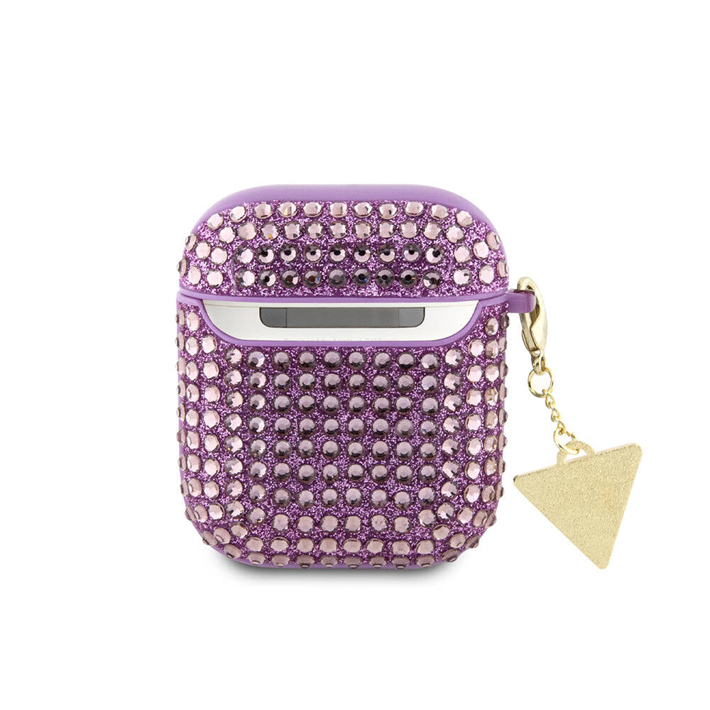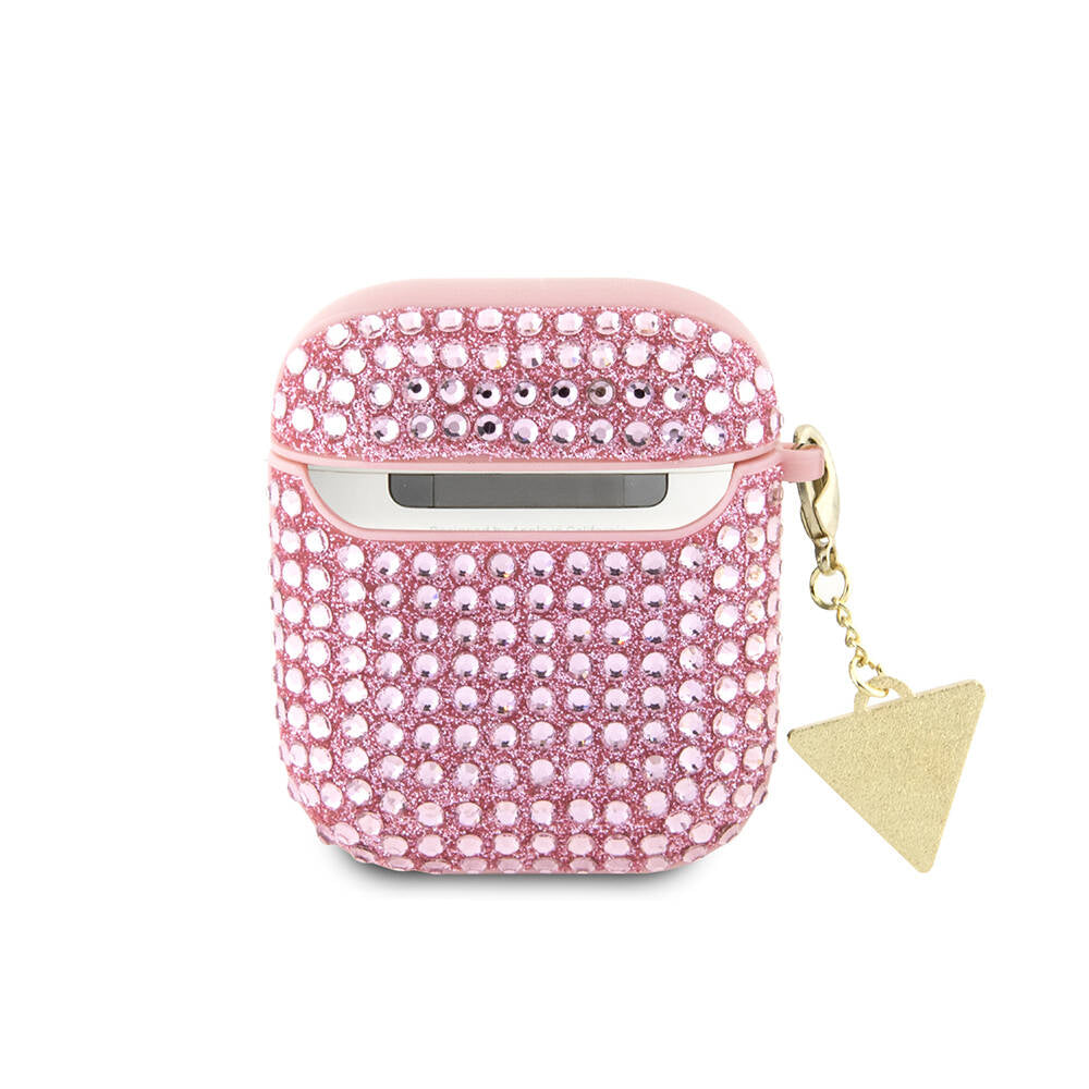 Apple Airpods Kılıf Guess Orjinal Lisanslı Parıltılı Taş Kaplamalı Üçgen Logo Süs Zincirli Kapak