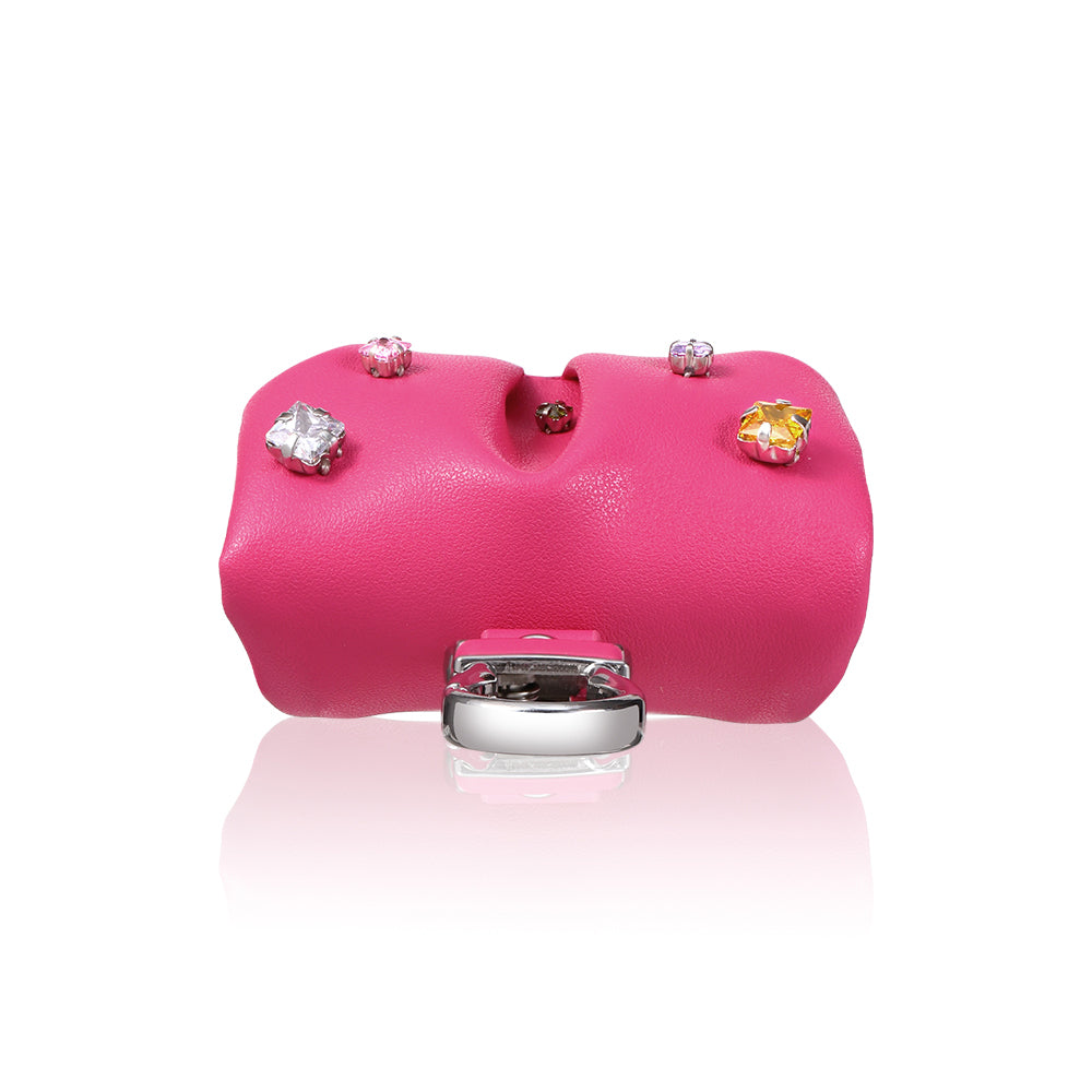 Apple Airpods Pro 2 Kılıf PU Deri Çanta Tasarımlı Taşlı Pynana Sugar Cube Serisi Kapak Pembe