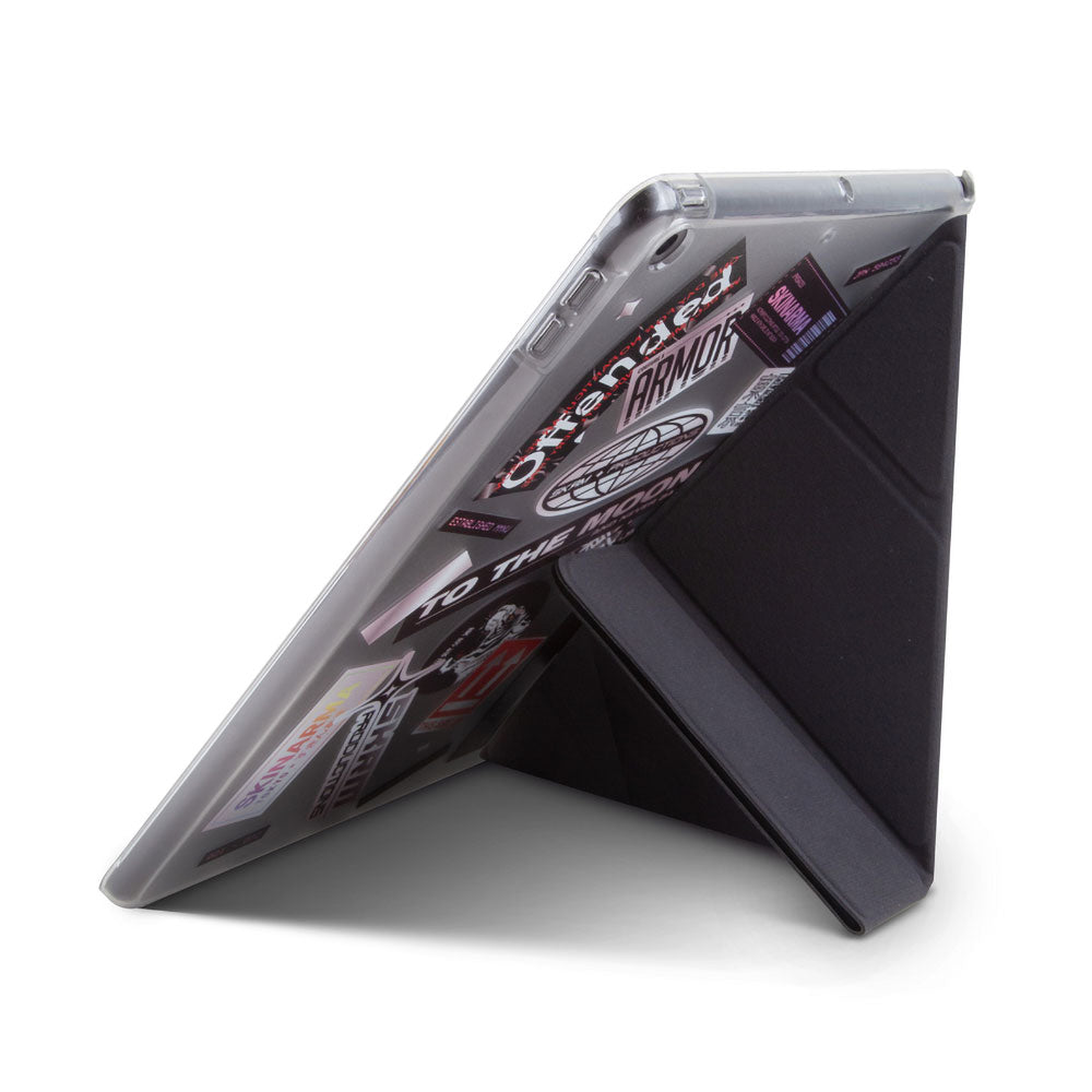 Apple iPad 10.2 2021 (9.Nesil) Kılıf SkinArma Sticker Tasarımlı Arkası Şeffaf Standlı Mageru Kılıf Siyah