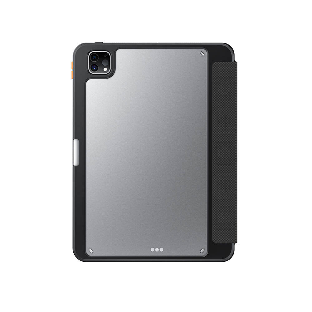 Apple iPad Pro 11 2025 M5 Kılıf SkinArma Kabartma Baskı Tasarımlı 360 Tam Koruma Arkası Şeffaf Standlı Gamma Kılıf Siyah