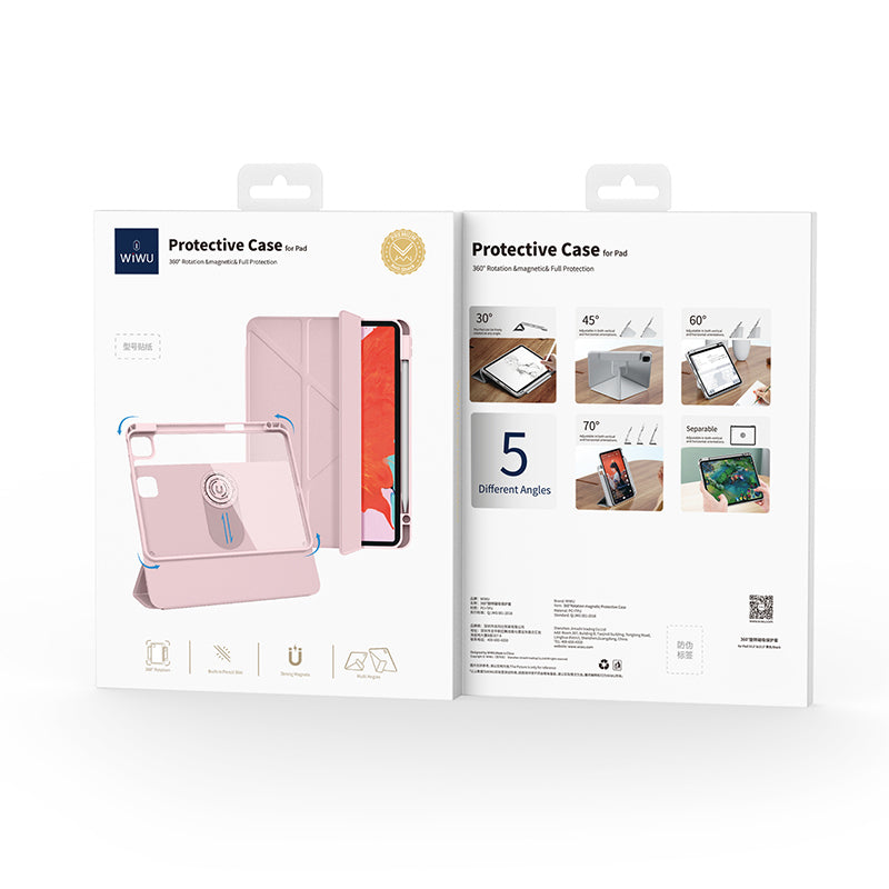 Apple iPad Pro 11 2025 M5 Wiwu 360° Dönebilen Standlı Magnetik Koruyucu Tablet Kılıfı Pembe
