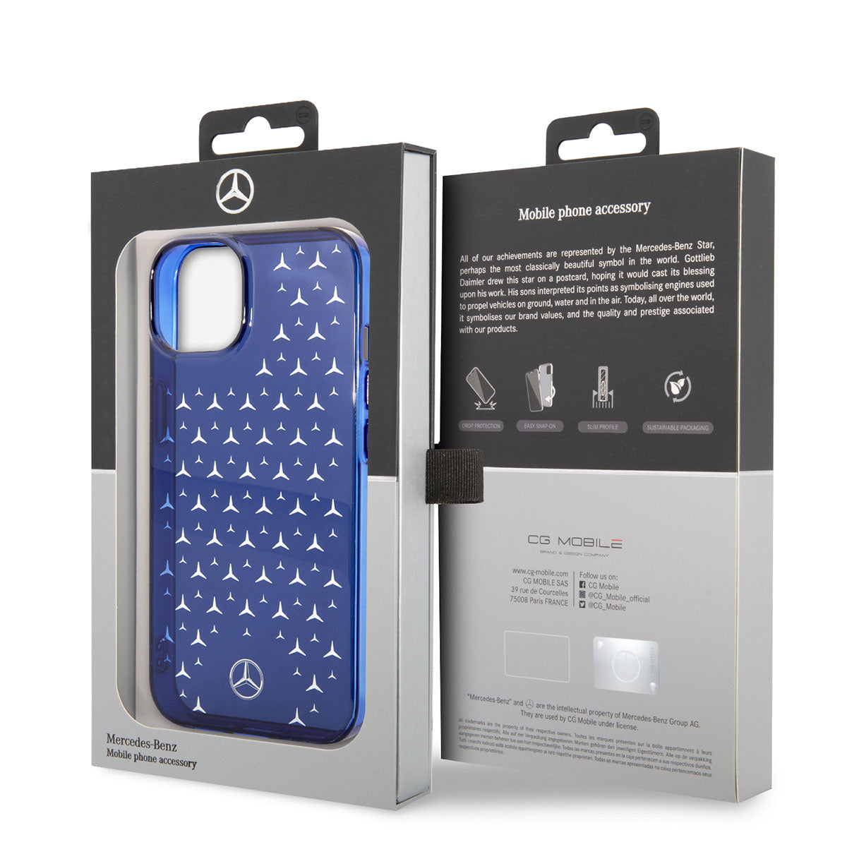 Apple iPhone 14 Kılıf Mercedes Benz Transparan Yıldızlı Dizayn Kapak Mavi
