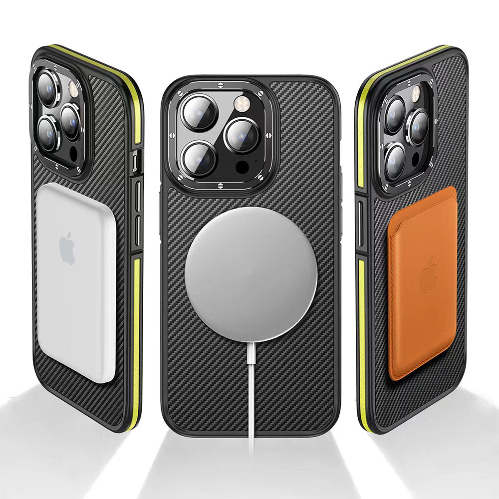 Apple iPhone 14 Pro Kılıf Magsafe Şarj Özellikli Mat Transparan Karbon Fiber Görünümlü Wlons Marin Kapak