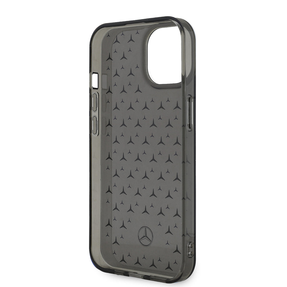 Apple iPhone 15 Kılıf Mercedes Benz Çift Katmanlı Yıldız Desenli Dizayn Kapak Siyah-Mavi