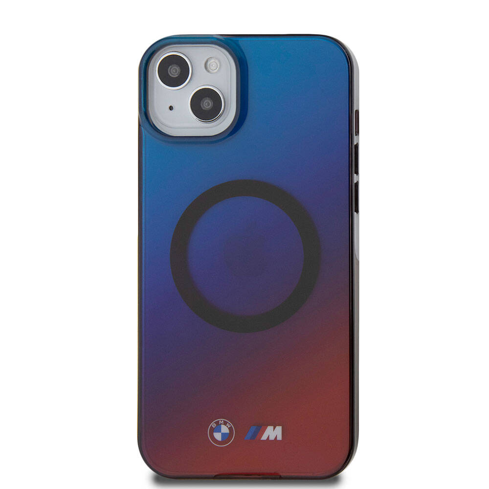 Apple iPhone 15 Plus Kılıf BMW M-safe Şarj Özellikli Transparan Renk Geçişli Dizayn Orjinal Lisanslı Kapak Mavi-Kırmızı