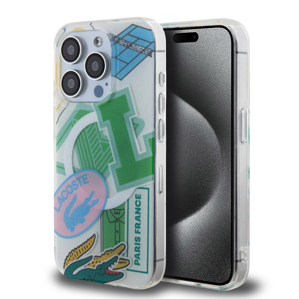 Apple iPhone 15 Pro Kılıf Lacoste Orjinal Lisanslı Magsafe Şarj Özellikli Çift Katmanlı Yamalar Desenli Kapak
