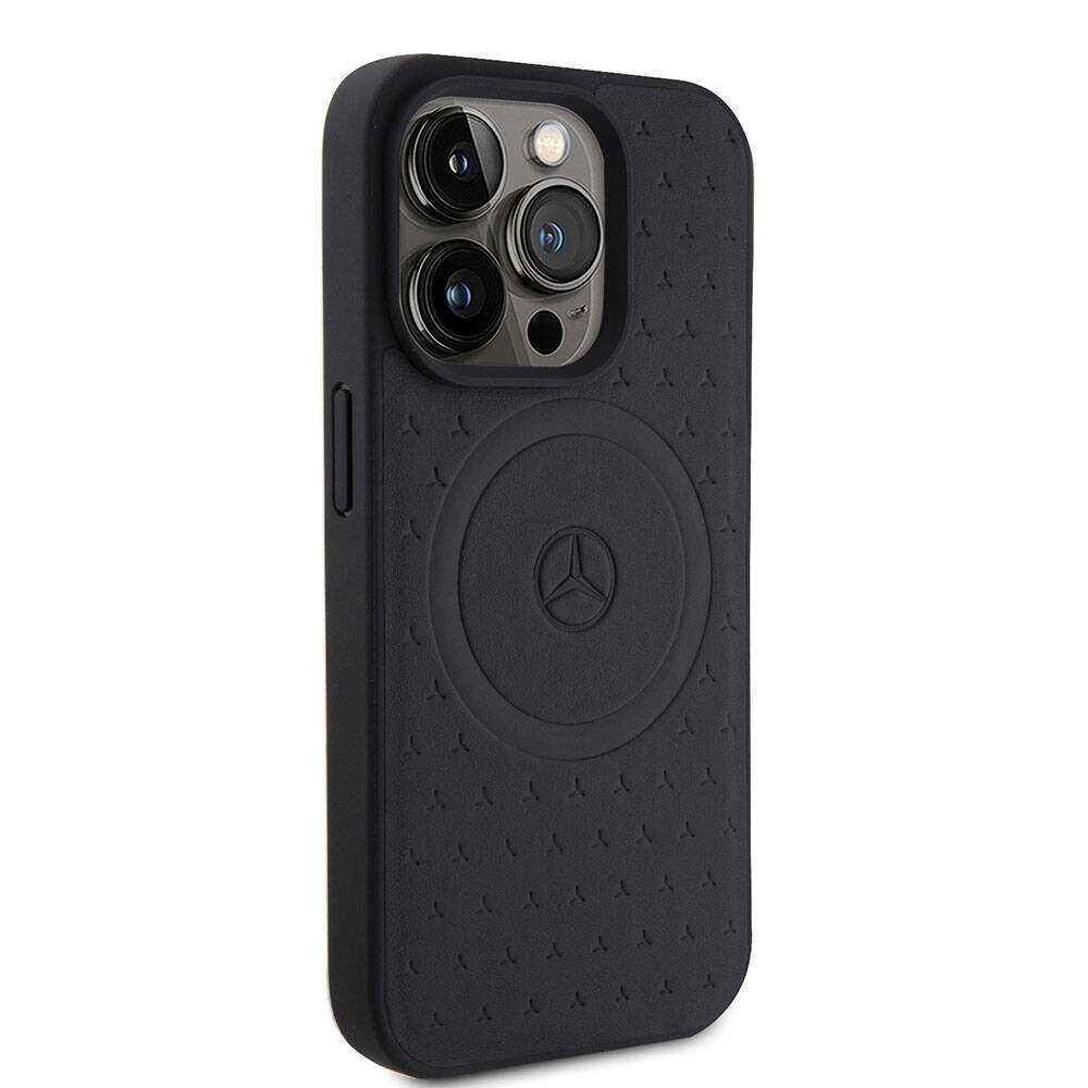 Apple iPhone 15 Pro Kılıf Mercedes Benz Orjinal Lisanslı Magsafe Şarj Özellikli Mühürlü Yıldız Desenli ve Logolu Deri Kapak