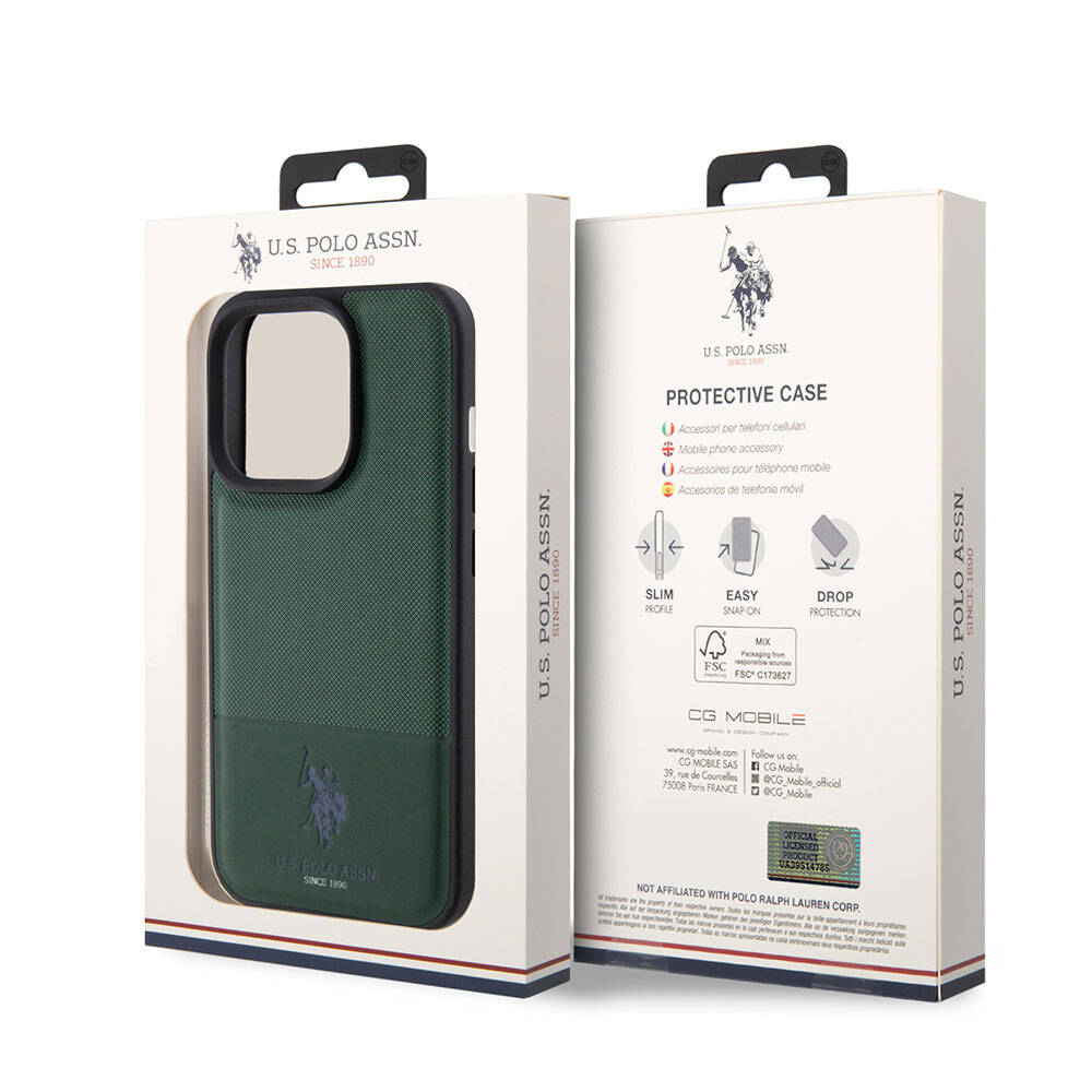 Apple iPhone 15 Pro Kılıf U.S. Polo Assn. Orjinal Lisanslı Suni Deri Arka Yüzey Baskı Logolu Örgü Desenli Kapak