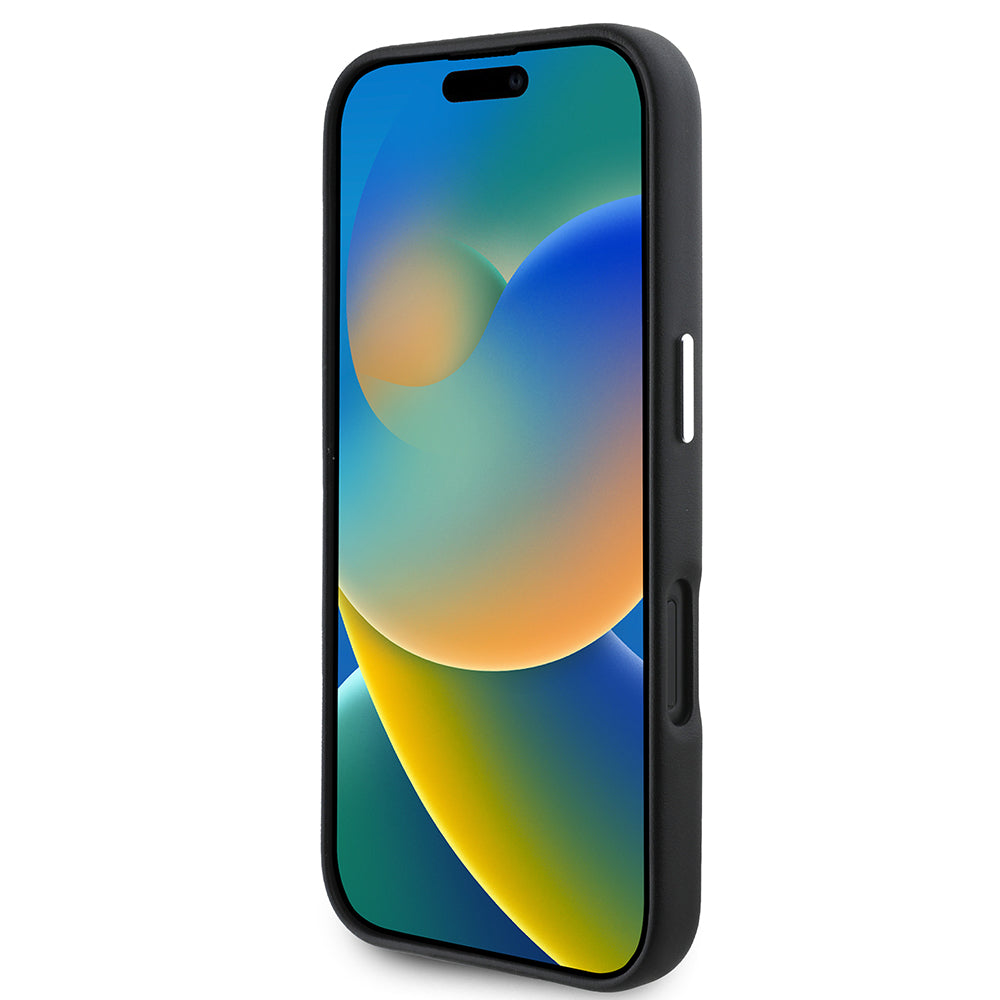Apple iPhone 16 Plus Kılıf Karl Lagerfeld Orjinal Lisanslı M-safe Şarj Özellikli Metal Kamera ve Buton Tasarımlı Plaka Logolu PU Deri Kapak Siyah