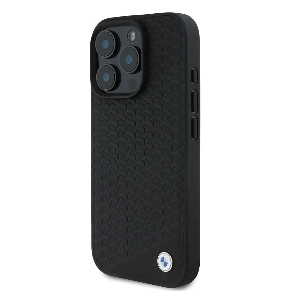 iPhone 16 Pro Kılıf BMW Orjinal Lisanslı Magsafe Şarj Özellikli Metal Logolu Dokulu Diamond Deri Kapak