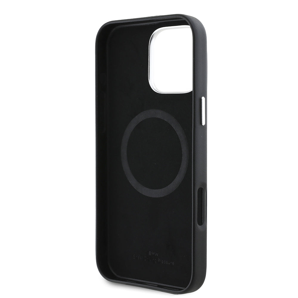 Apple iPhone 16 Pro Kılıf BMW Orjinal Lisanslı M-safe Şarj Özellikli Metal Logolu Tam Kaplama Deri Kapak Siyah