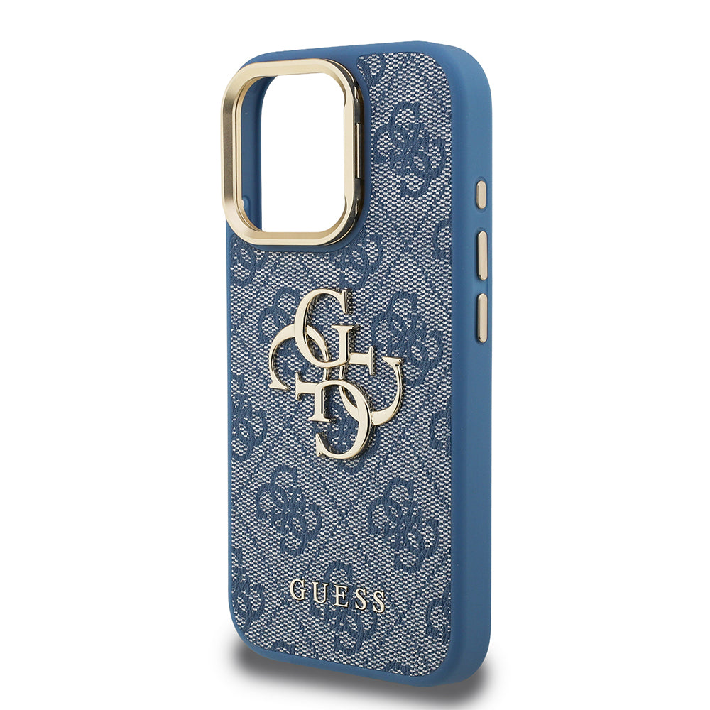 iPhone 16 Pro Kılıf Guess Orjinal Lisanslı PU Deri 4G Desenli Metal Büyük 4G ve Yazı Logolu Kamera Standlı Kapak