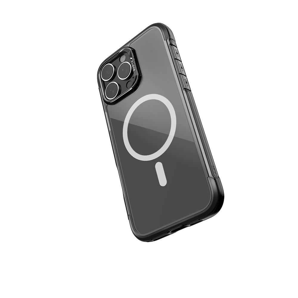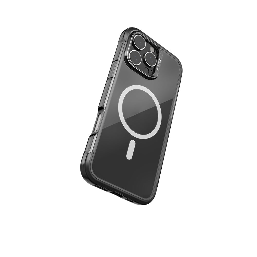 Apple iPhone 16 Pro Max Kılıf M-safe Şarj Özellikli Raptic Air Serisi Airbag Tasarımlı Metal Köşelikli Şeffaf Kapak Siyah