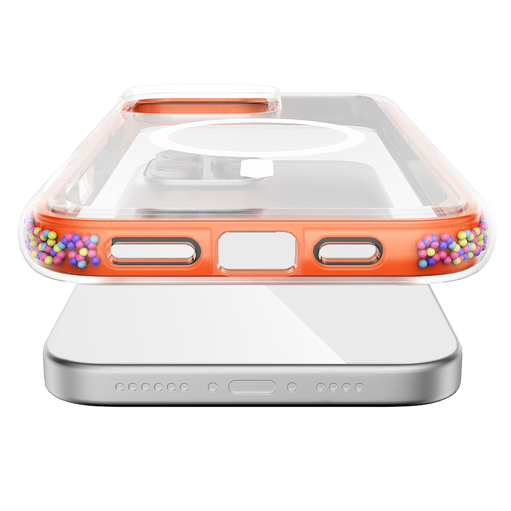 Apple iPhone 16 Pro Max Kılıf M-safe Şarj Özellikli Raptic AirJoy Serisi Boncuk Tasarımlı Şeffaf Kapak Turuncu