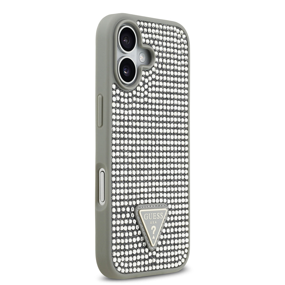 Apple iPhone 17 Kılıf Guess Orjinal Lisanslı Taşlı Arka Yüzey Üçgen Logolu Kapak Gümüş