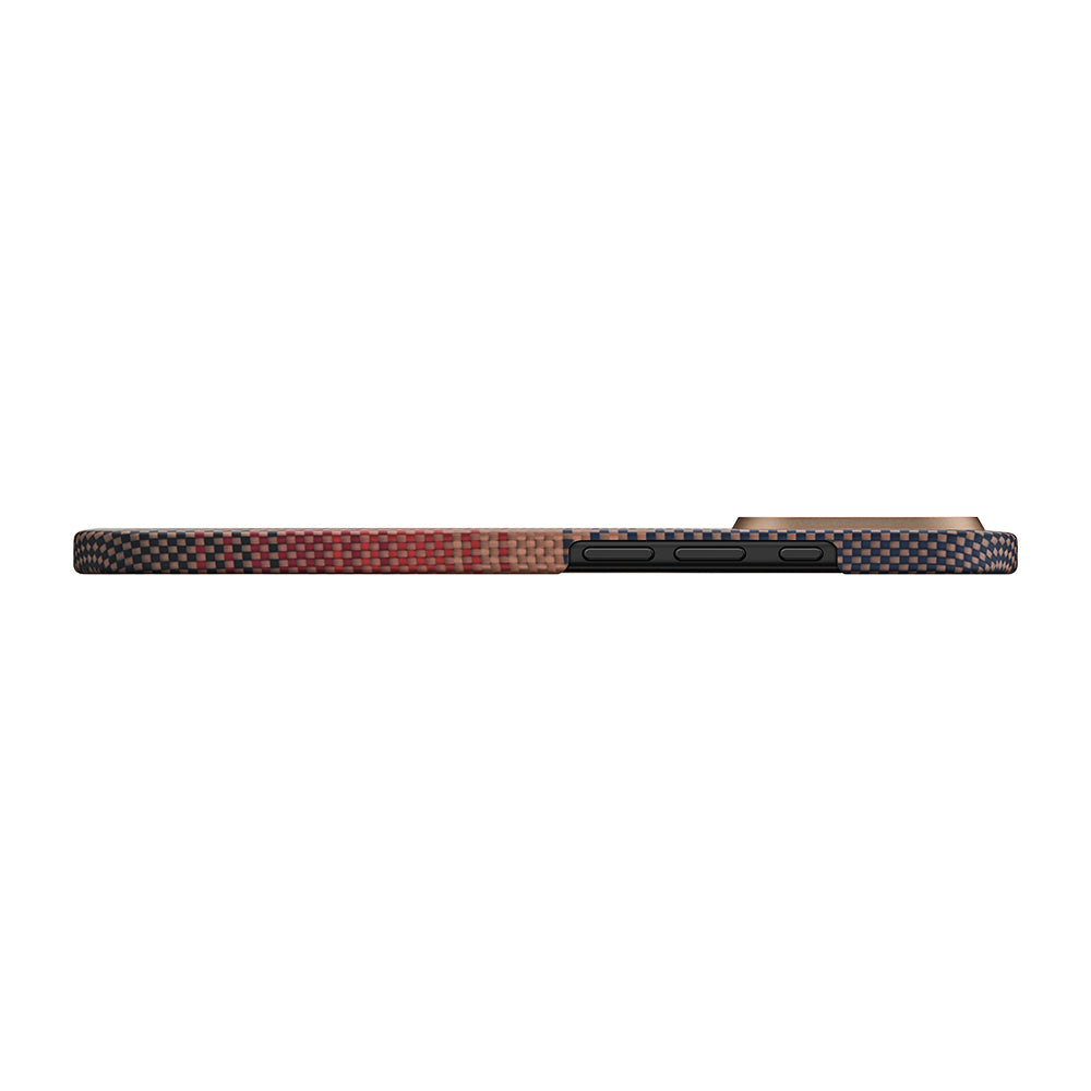 Aerospace sınıfı aramid fiber dokuma yapısı, çizilmelere ve renk solmasına karşı üstün dayanıklılık sunar. Fusion Weaving teknolojisi ile bir araya getirilen Sunset-Moonrise temalı renk tonları, kılıfın estetiğini arttırırken, cildinize dost dokusuyla mükemmel bir tutuş sağlar. Arka kapakta kullanılan alüminyum alaşım kamera çerçevesi de kameranızı koruma altına alır.