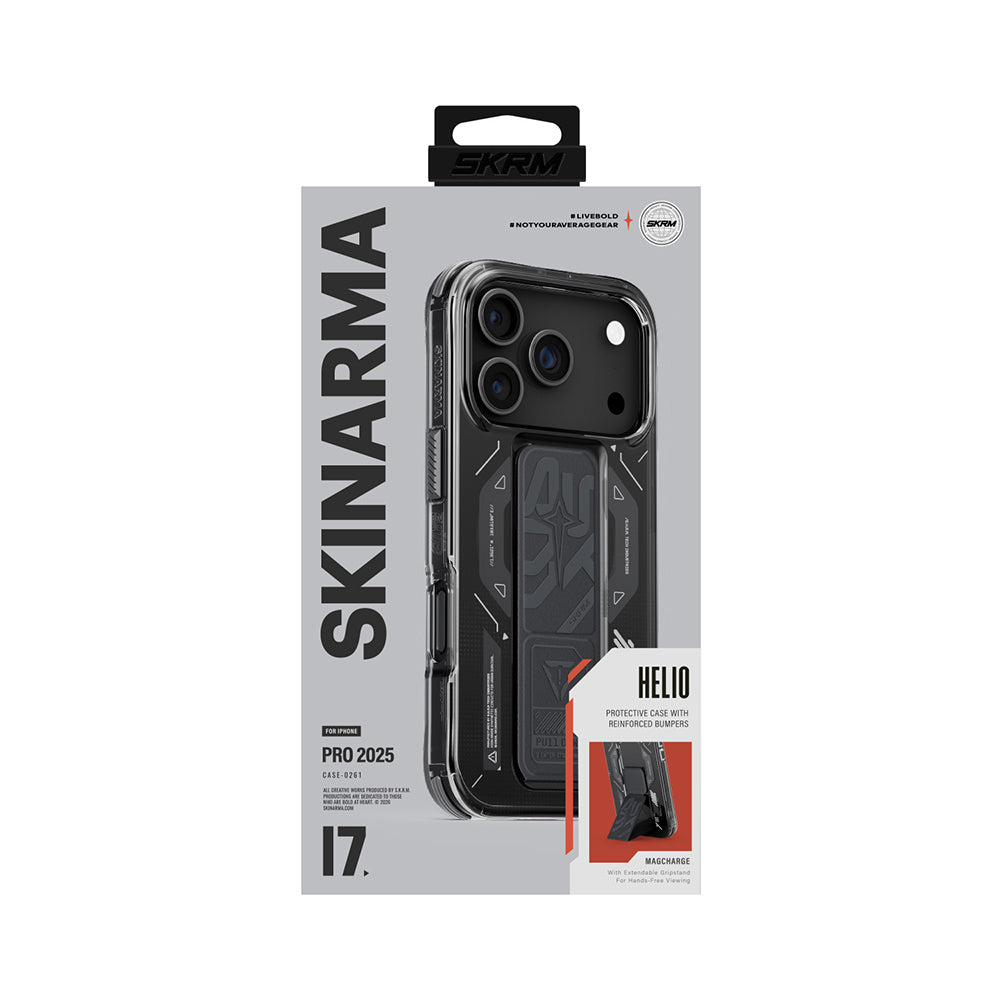 iPhone 17 Pro Kılıf M-safe Şarj Özellikli Teknoloji Desenli Skinarma Helio Mag Charge Standlı Kapak