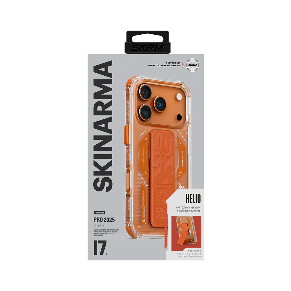Apple iPhone 17 Pro Kılıf M-safe Şarj Özellikli Teknoloji Desenli Skinarma Helio Mag Charge Standlı Kapak Turuncu