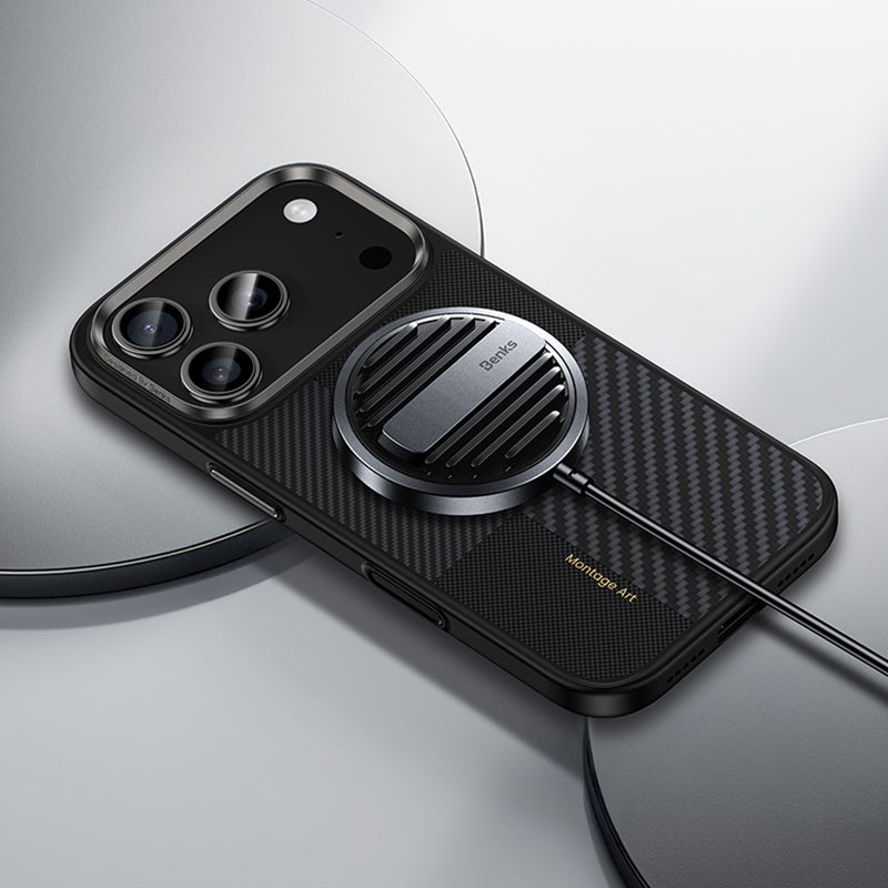 iPhone 17 Pro Max Kılıf M-safe Şarj Özellikli Karbon Fiber Benks Montage Hybrid ArmorPro Kevlar Kapak