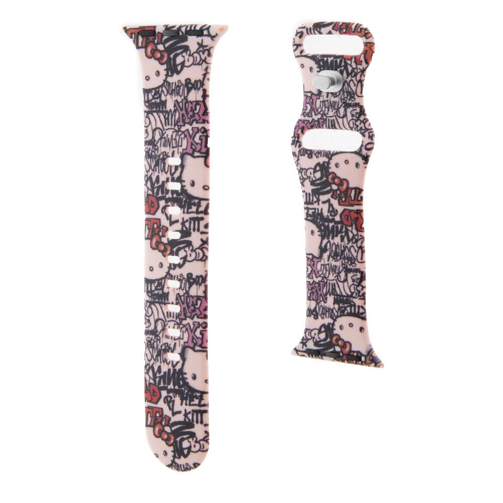 Apple Watch 38mm Hello Kitty Orjinal Lisanslı Etiket Graffiti Silikon Kordon Pembe
