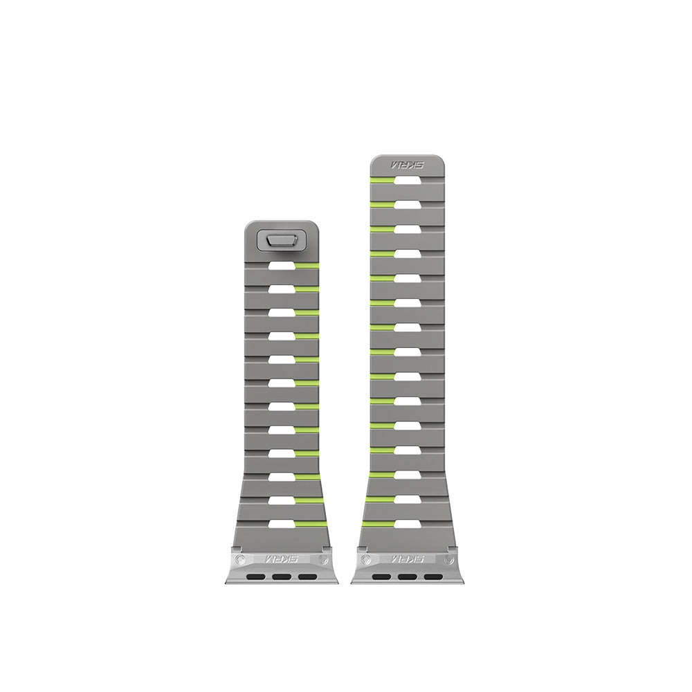Apple Watch Ultra 49mm Skinarma Nightglow Atom TPU Kasa Koruyucu + Gemini Silikon Kordon Gri-Yeşil