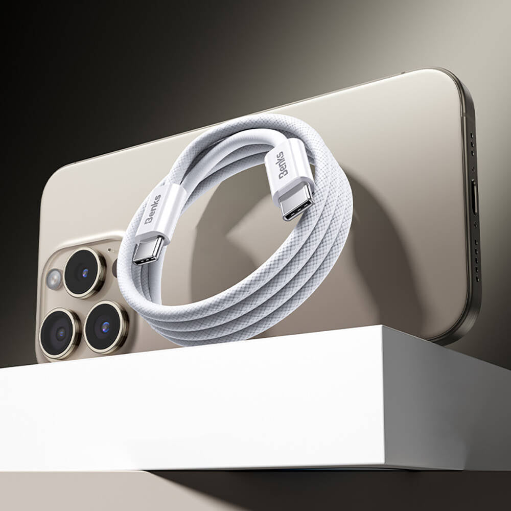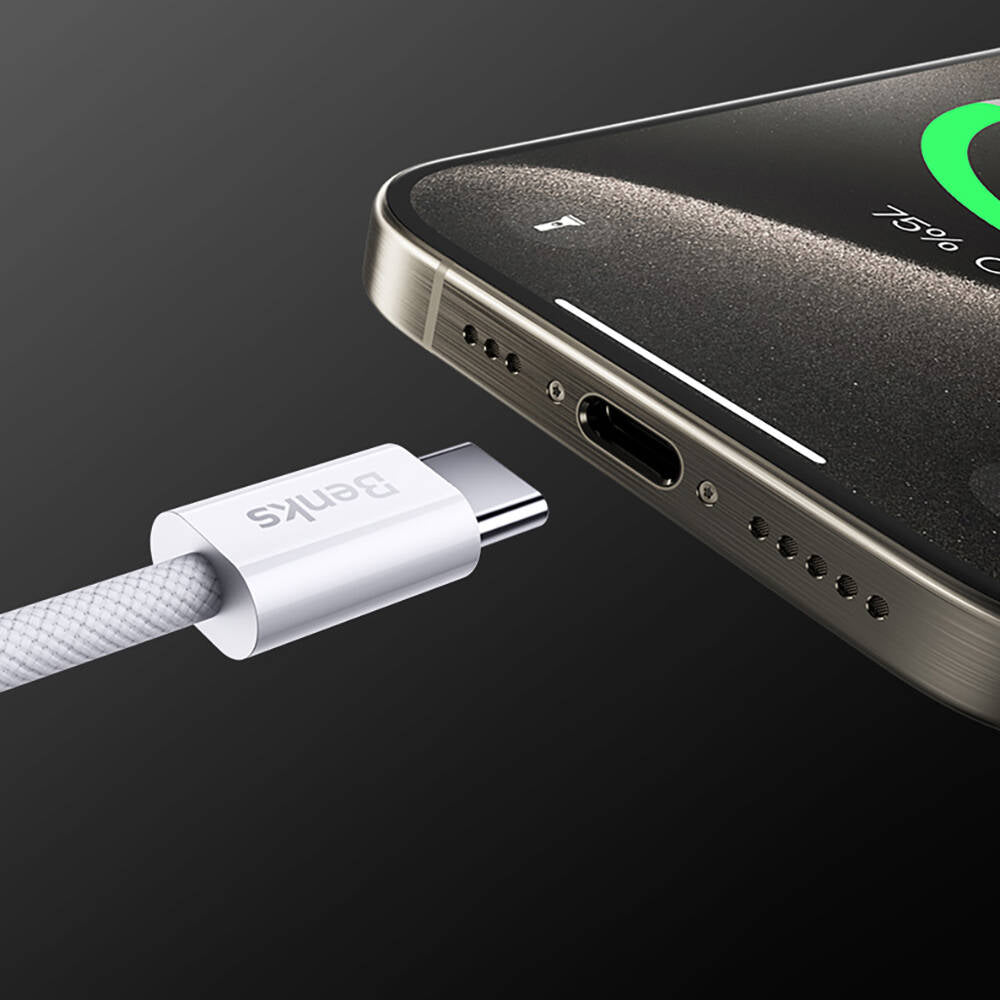 Benks D46 Type-C to Type-C PD 3.0 Örgülü Şarj ve Data Kablosu 60W 2 Metre Beyaz