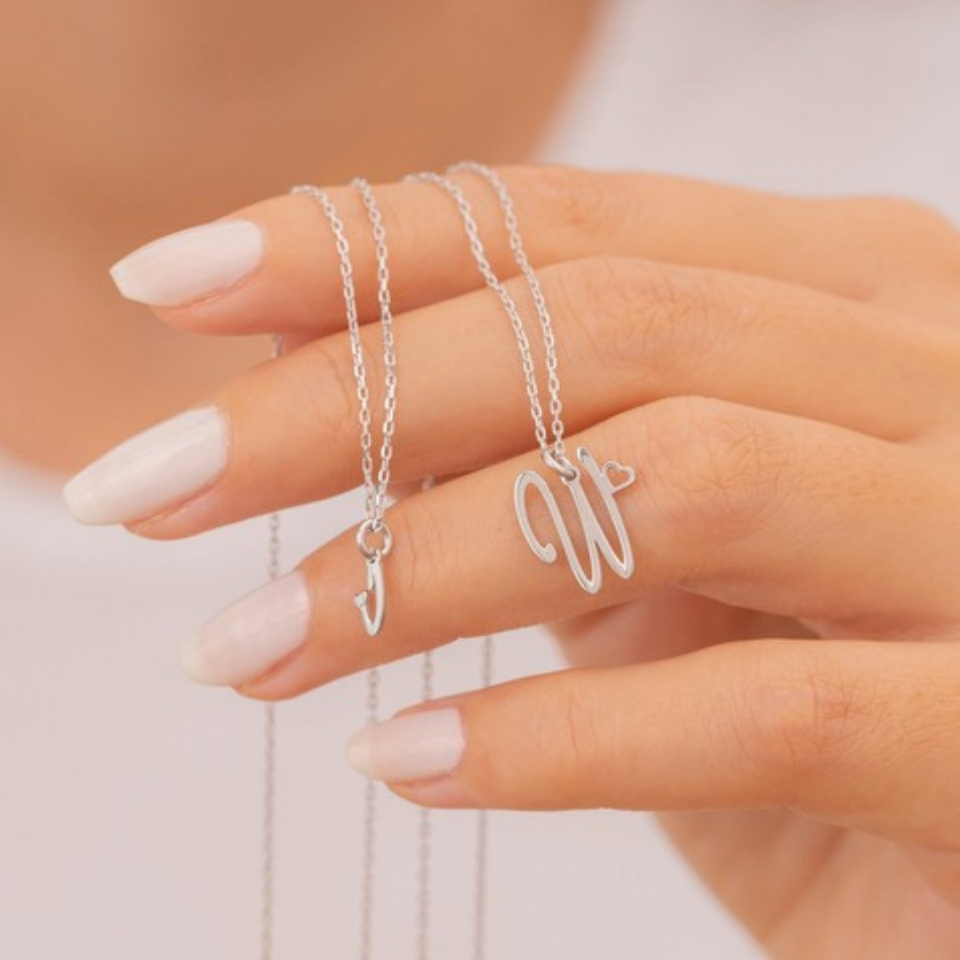 Tasarım: Harf figürü ve yanında kalp detayı ile modern, şık zincir