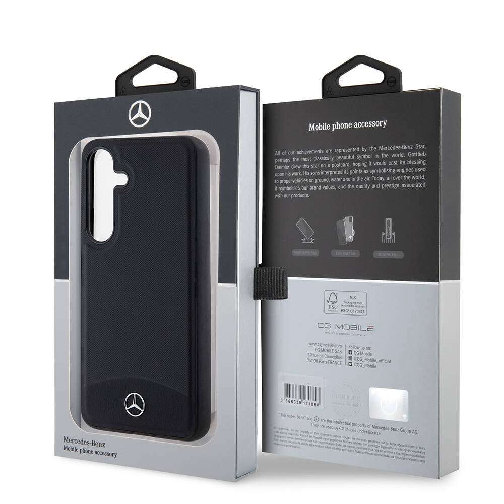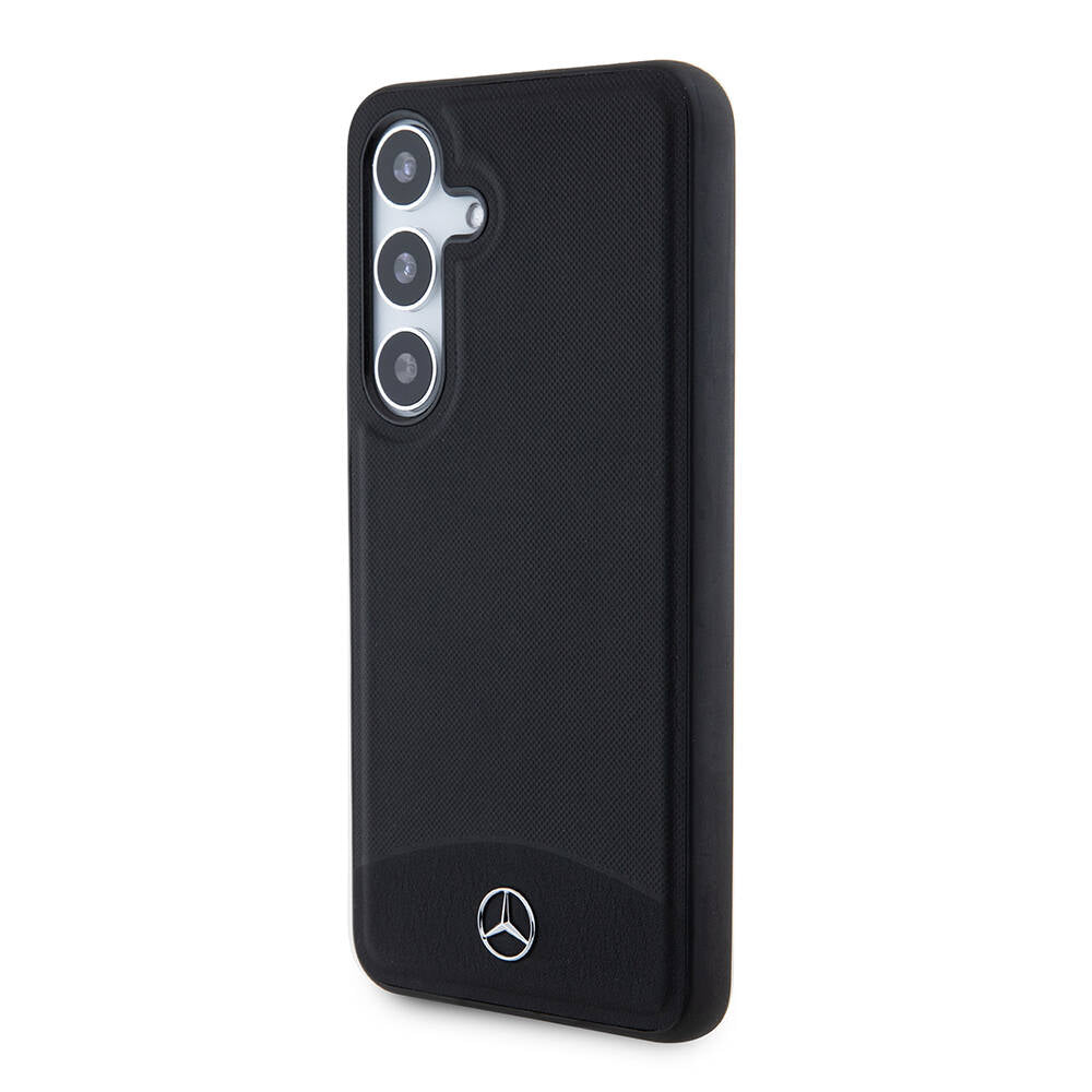 Galaxy S24 Kılıf Mercedes Benz Orjinal Lisanslı M-safe Şarj Özellikli Deri Dokumalı Sade Kapak Siyah