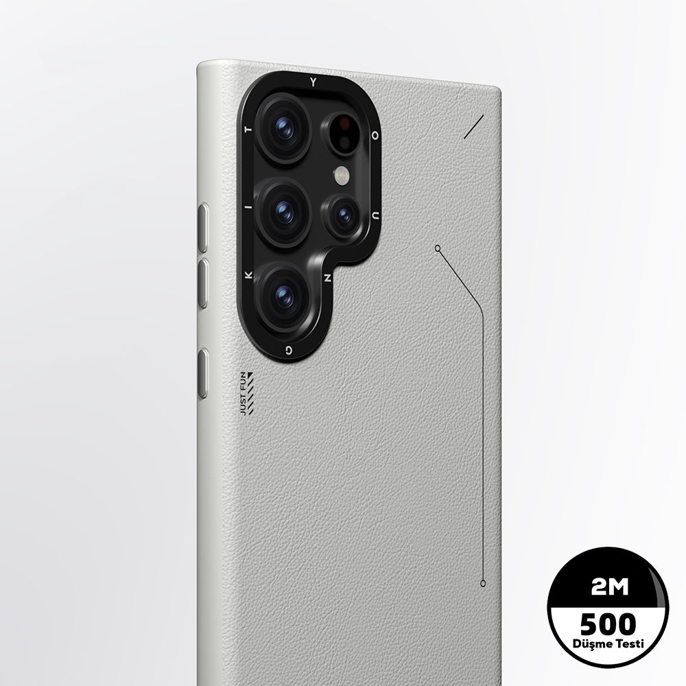 Galaxy S24 Ultra Kılıf M-safe Şarj Özellikli Basit Mat Deri Desenli Youngkit Tech Fashion Serisi Kapak Gümüş