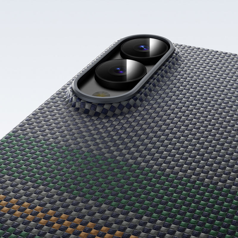 Aurora, klasik estetiğini ince kevlar lifleri ve değişken desenlerle birleştirerek yeni bir dokuma düzeni oluşturur.