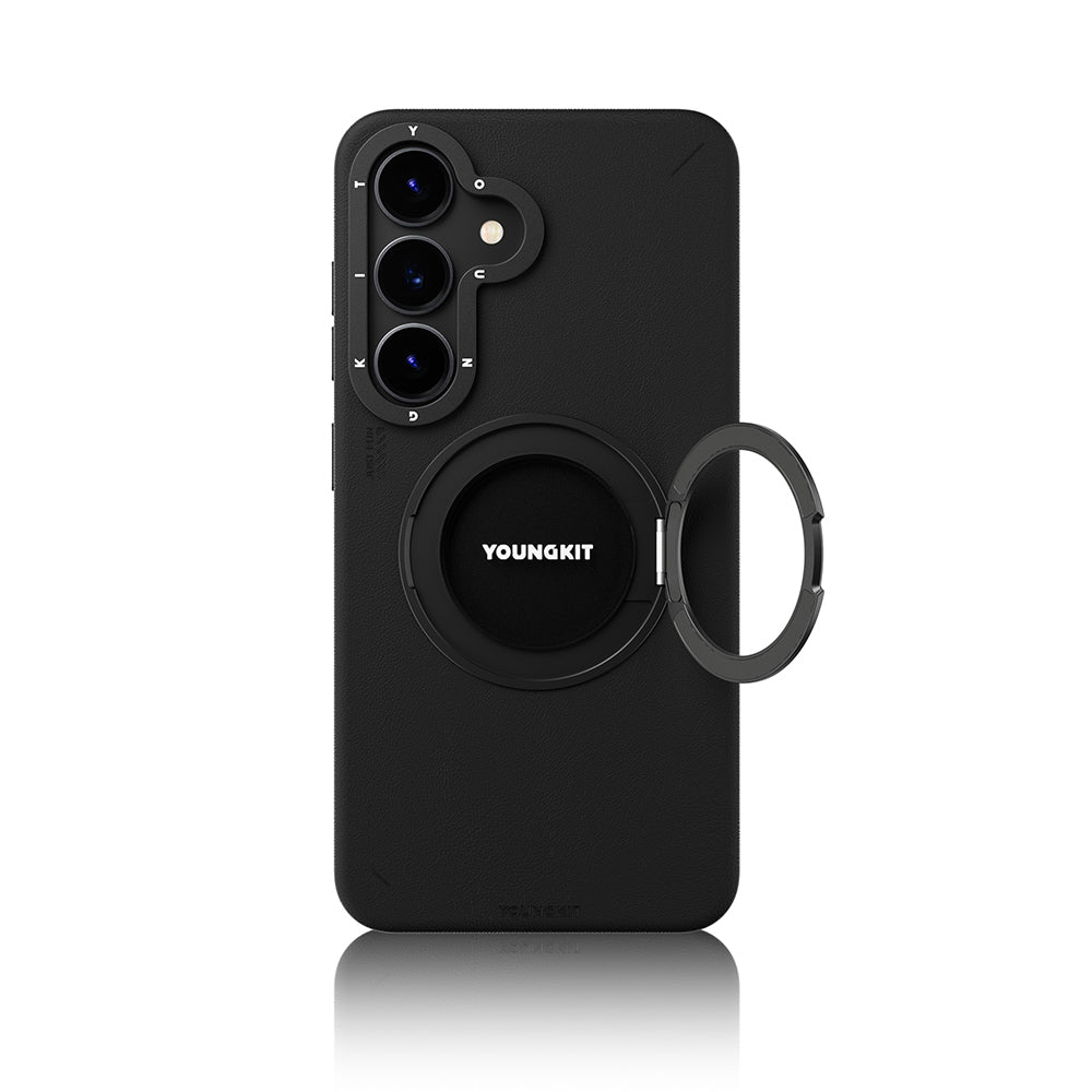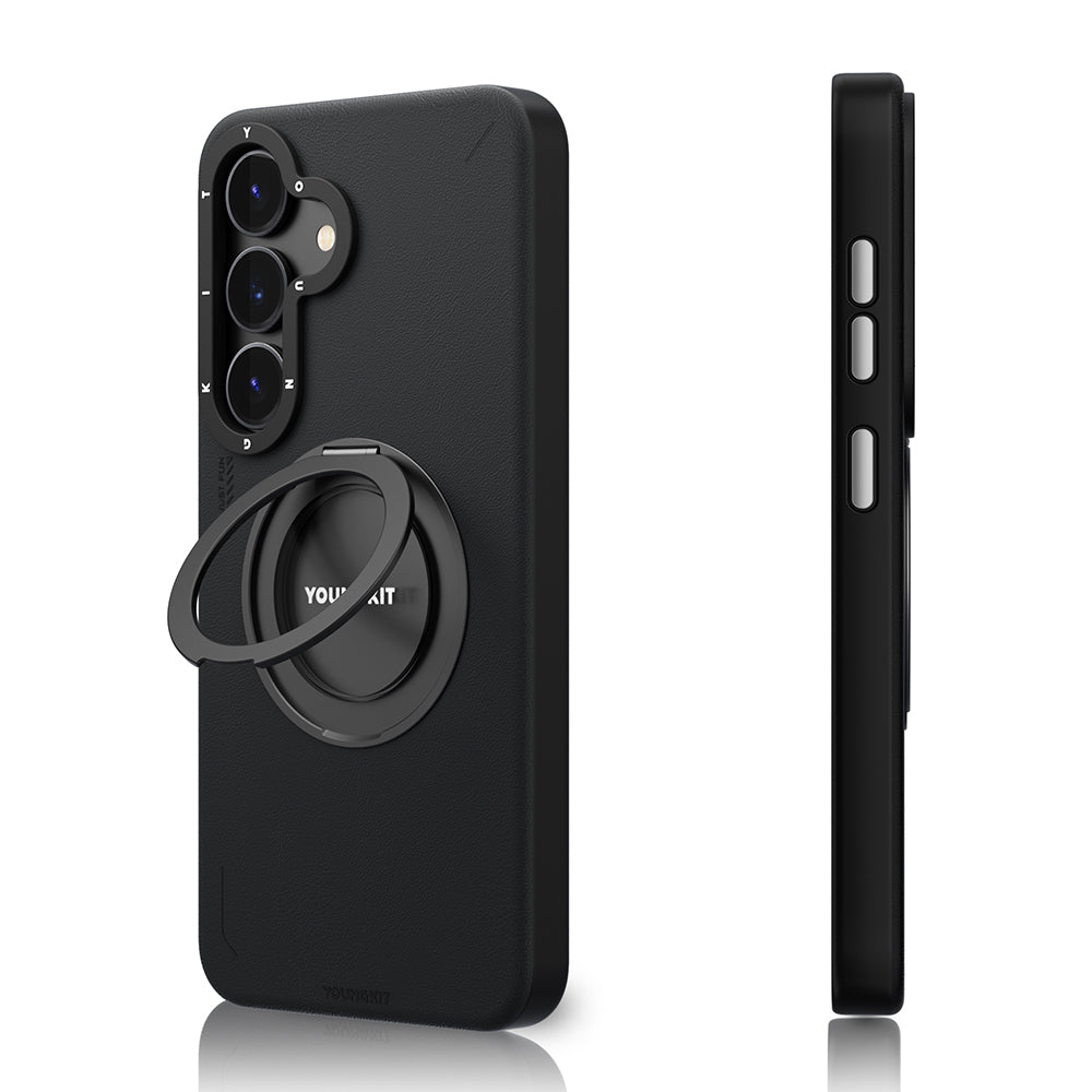Galaxy S25 Kılıf Magsafe Şarj Özellikli 360° Standlı Basit Mat Deri Desenli Youngkit Tech Leather Serisi Kapak