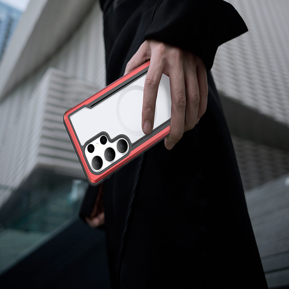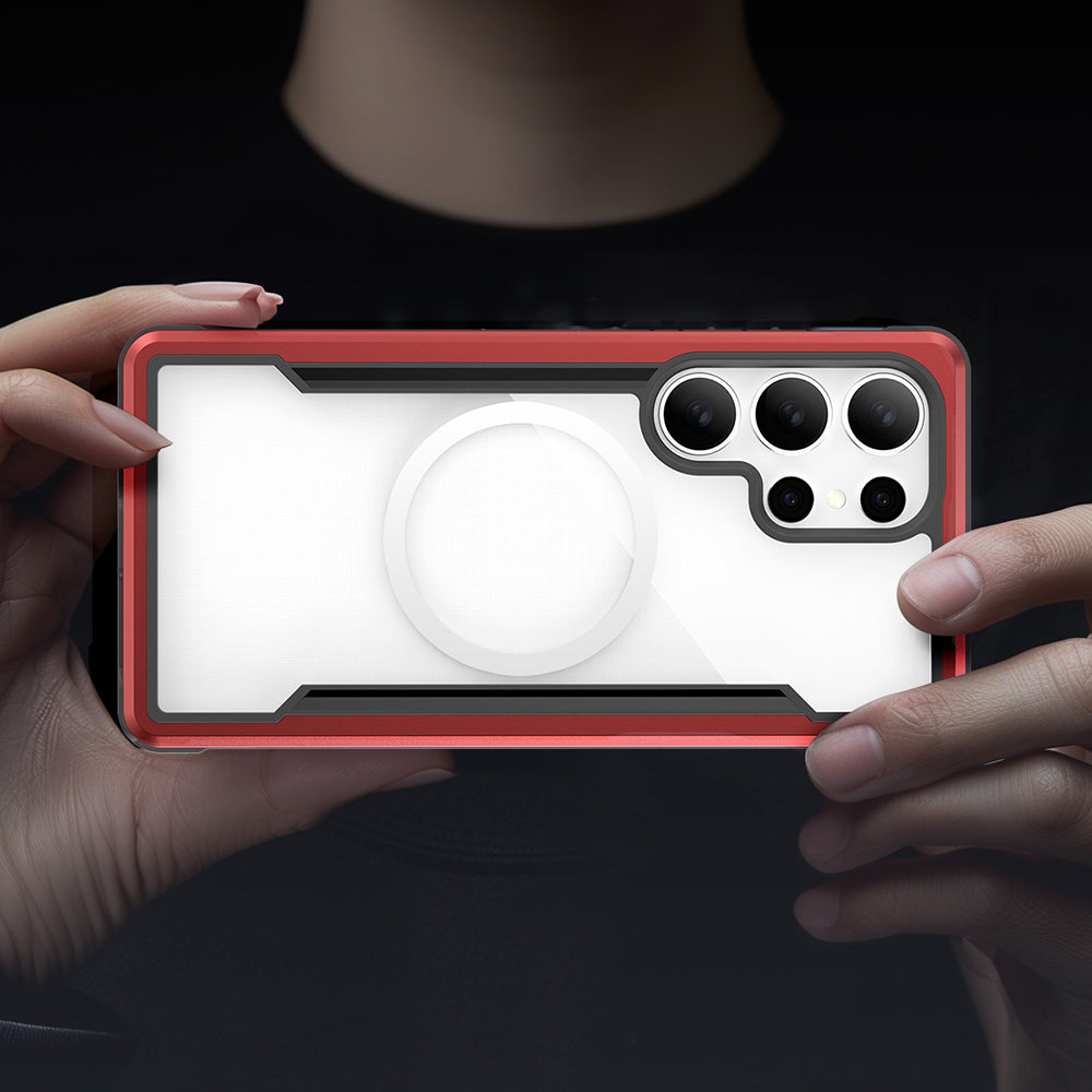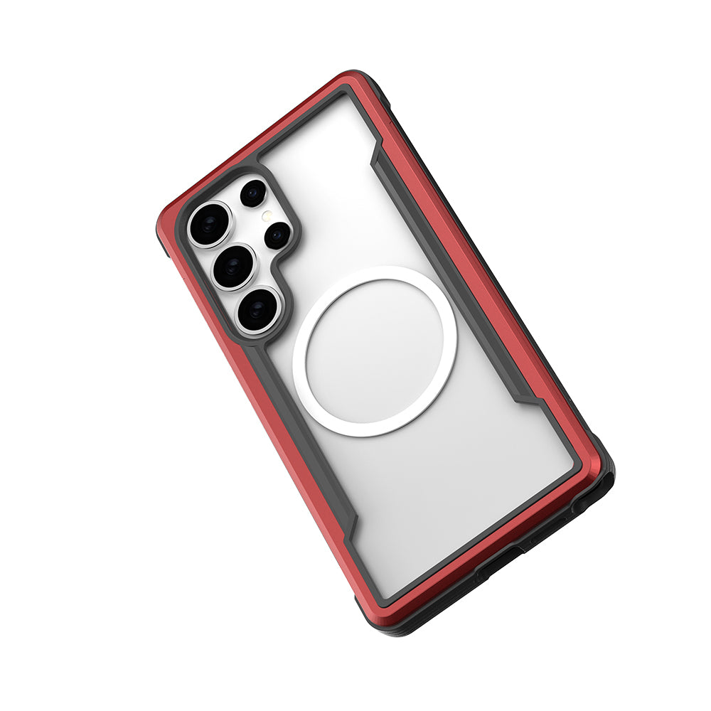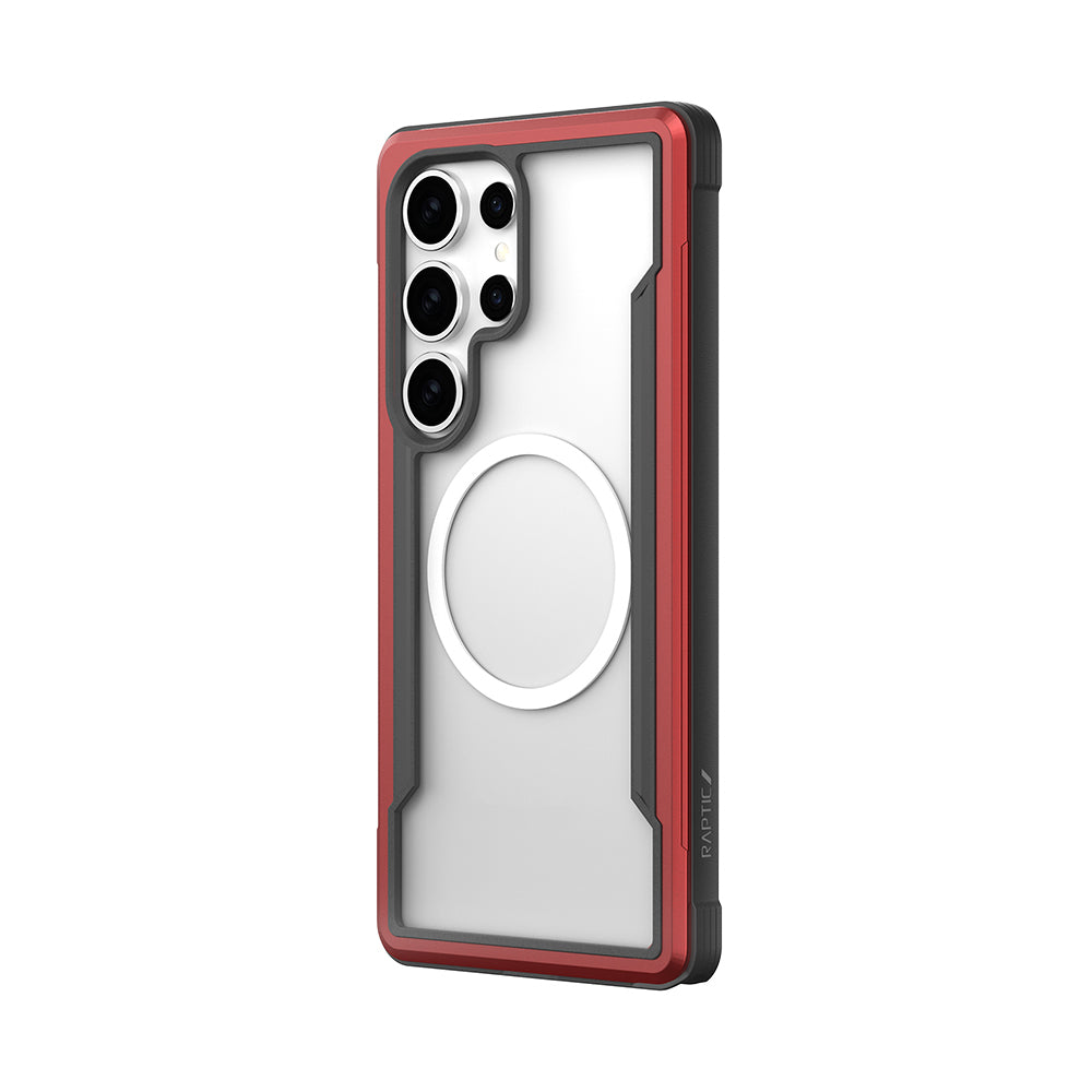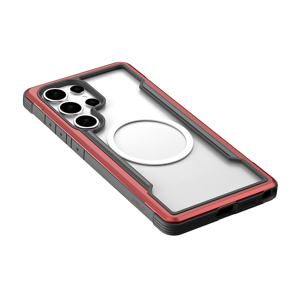 Galaxy S25 Ultra Kılıf M-safe Şarj Özellikli Airbagli Raptic Shield Serisi Şeffaf Arka Yüzey Kapak Kırmızı