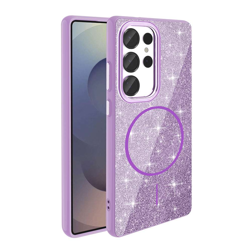 Galaxy S25 Ultra Kılıf M-safe Şarj Özellikli Parlayan Simli Zore Okso Kapak Derin Mor