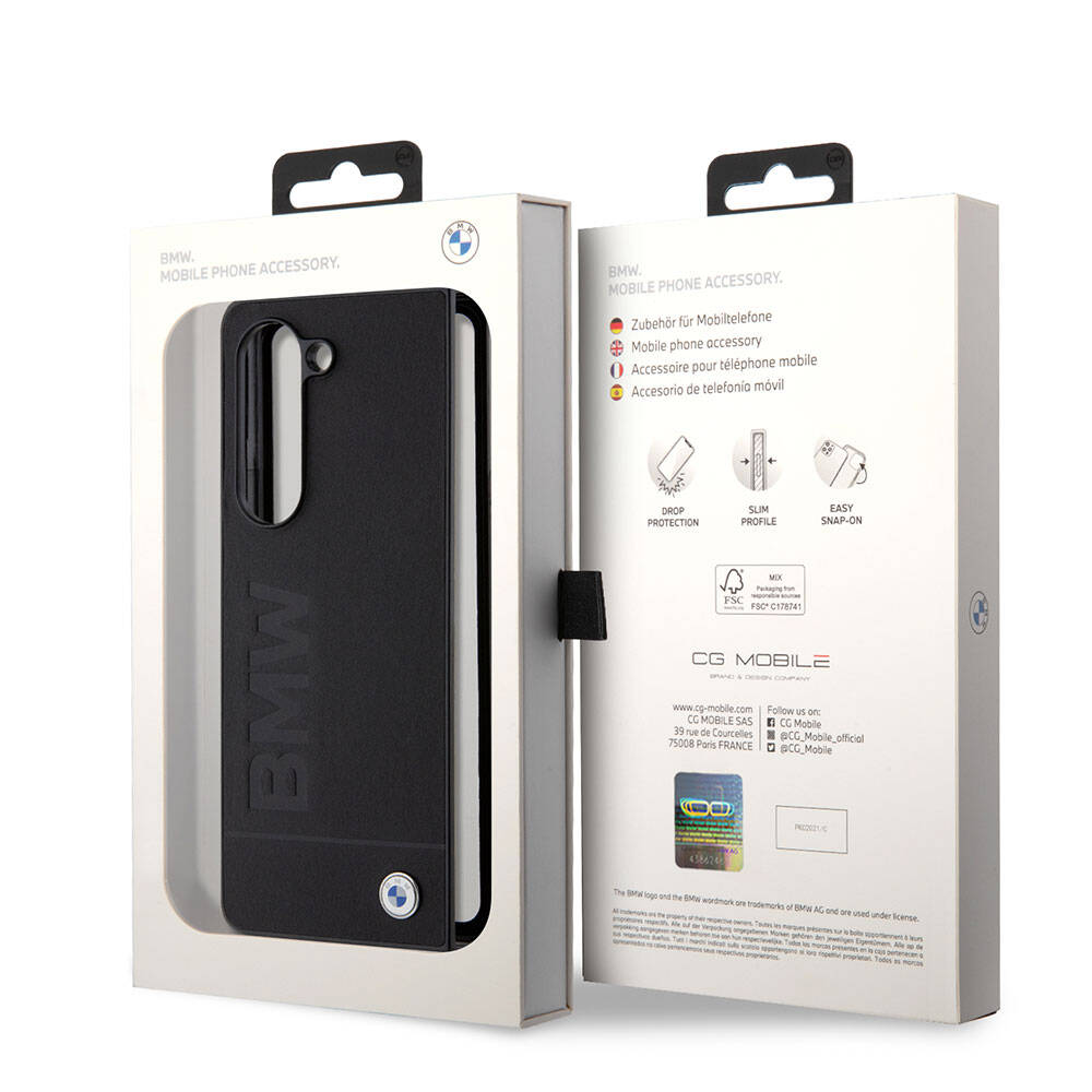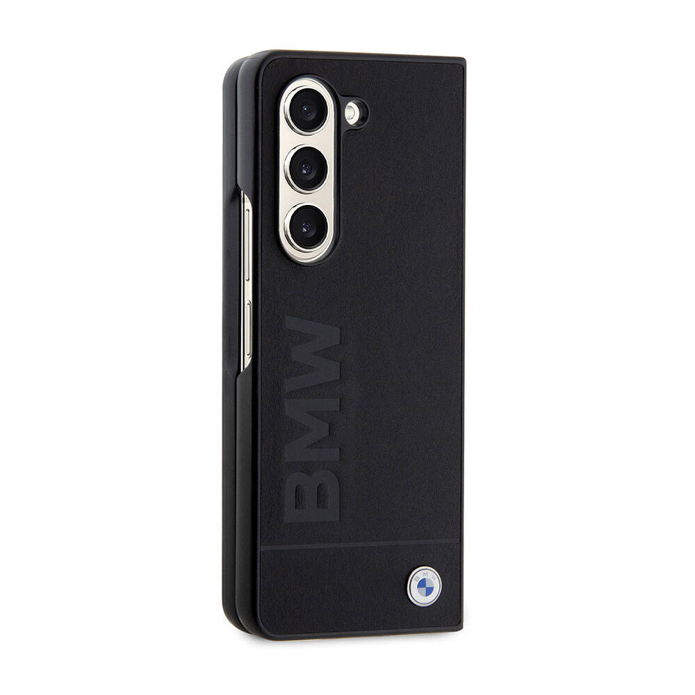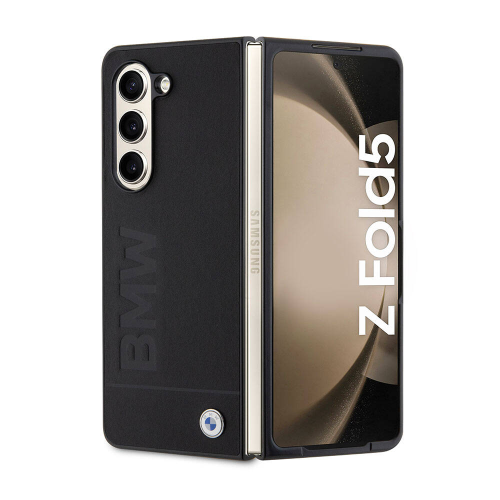 Galaxy Z Fold 5 Kılıf BMW Orjinal Lisanslı Sıcak Damga Logolu Deri Kapak Siyah