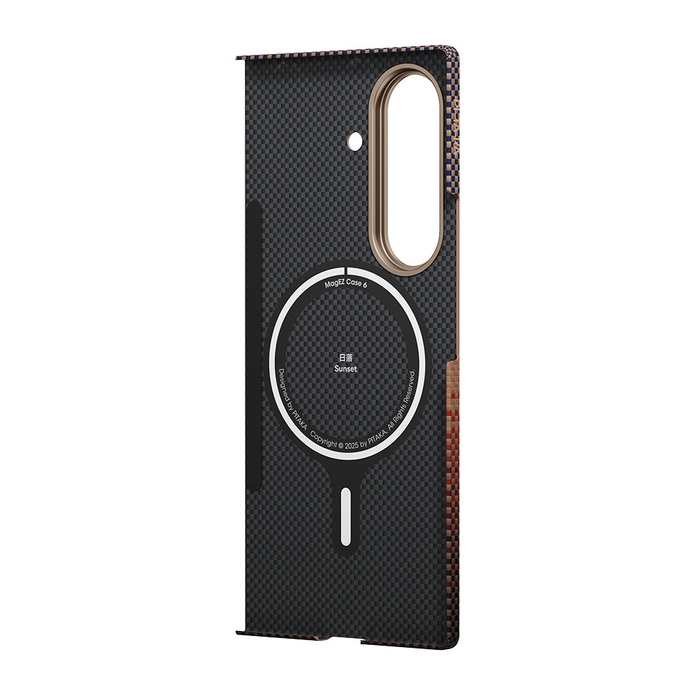 Galaxy Z Fold 7 Kılıf M-safe Şarj Özellikli Aramid Fiber Pitaka Tactile Woven Sunset-Moonrise Serisi Kapak