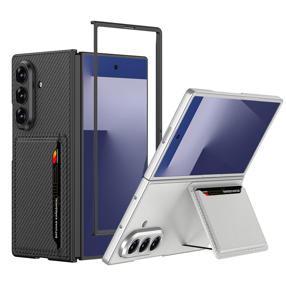 Galaxy Z Fold 7 Suni Deri Arka Yüzey Zore Kartlıklı Kıpta Silikon Kapak Siyah Karbon