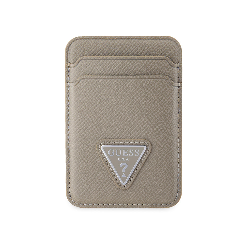 Guess Orjinal Lisanslı 2 Hazneli Üçgen Logolu Deri Magnetik Kartlık Kahverengi
