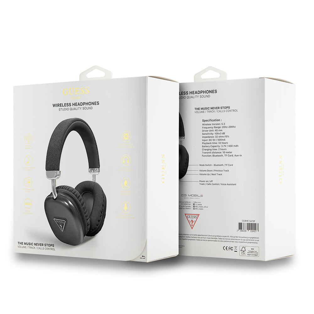 Guess Orjinal Lisanslı PU Üçgen Logolu Kulak Üstü Bluetooth Kulaklık Siyah