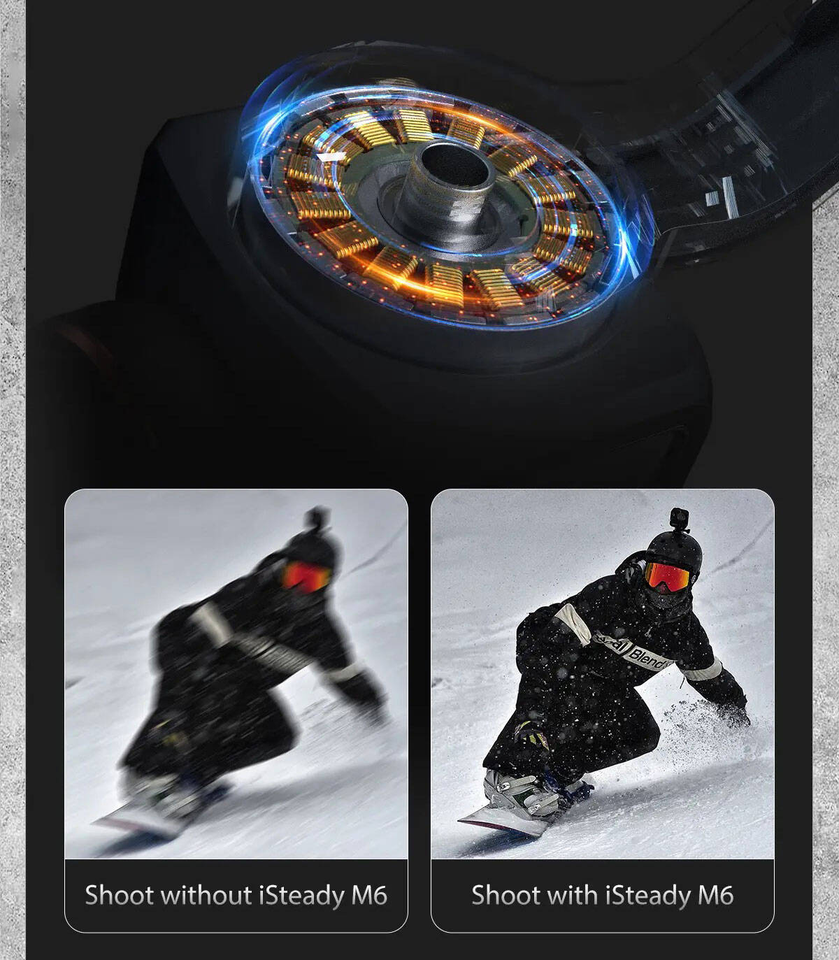 400g'a Kadar Taşıma Kapasitesi: Yüksek torka sahip 3 güçlü motor, 400g'a kadar taşıma kapasitesini destekler; Dört 1/4"-20 UNC portu, birden fazla aksesuarın eklenmesine olanak tanır. iSteady M6'nızın yaratıcı potansiyelini kilidini açın.