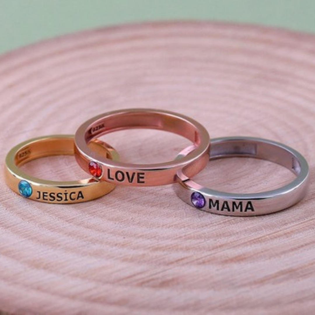 Sevdiklerinizin adını ya da size özel bir kelimeyi taşıyan bu yüzük, anlamı güçlü bir hediye; günlük kombinlerde ise sade ama karakterli bir tamamlayıcıdır.