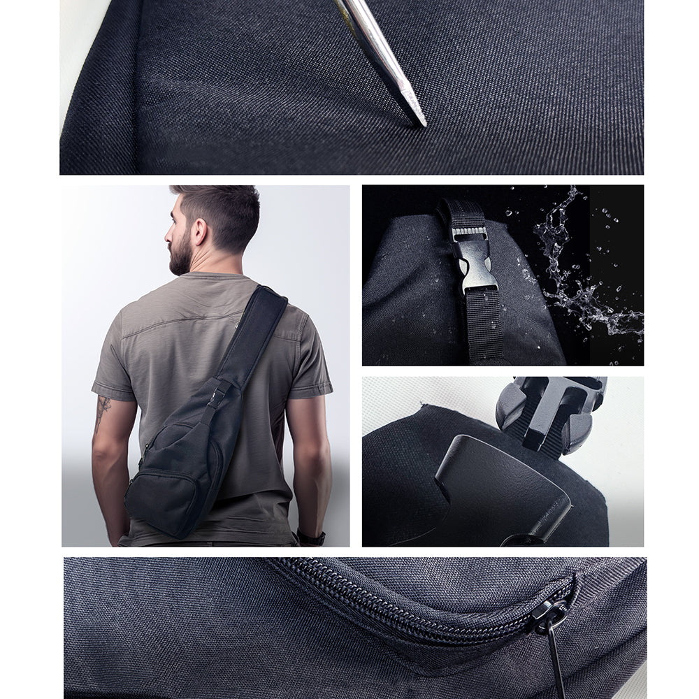 Lenyes LB526 Urus Serisi Su Geçirmez Polyester Kumaş Ayarlanabilir Omuz Askılı Çapraz Vücut Çantası Siyah
