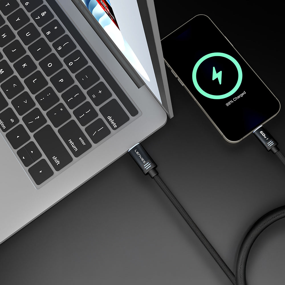 Lenyes LC532, 60W gücüyle cihazlarınızı hızlı ve güvenli bir şekilde şarj etmenizi sağlar. Akıllı çip teknolojisi, veri transferini optimize ederken aynı zamanda şarj işlemi sırasında ısınmayı minimumda tutar. Alüminyum alaşım kaplama, dayanıklılığı artırırken modern bir görünüm sunar.