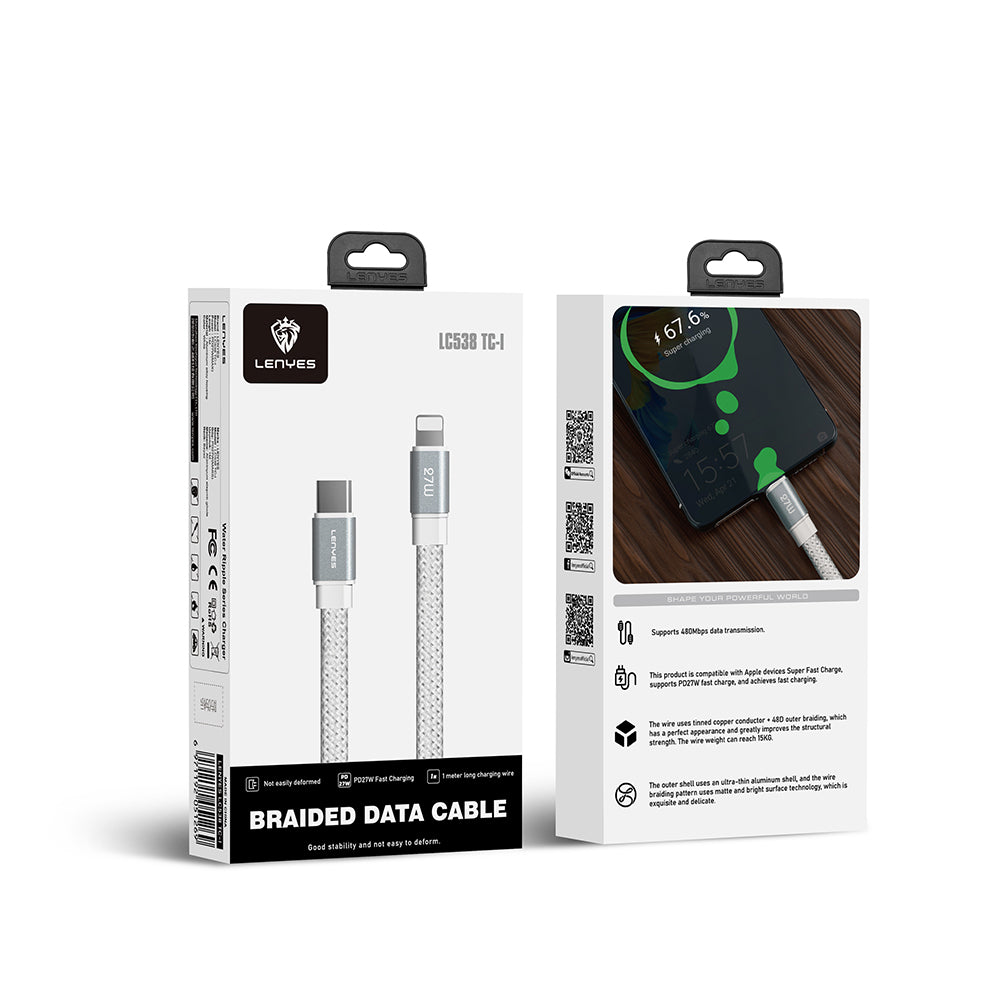 Lenyes LC538 Type-C to Lightning Hızlı Şarj Özellikli  48D Aramid Fiber Örgü Tasarımlı Data ve Şarj Kablosu 27W 1M