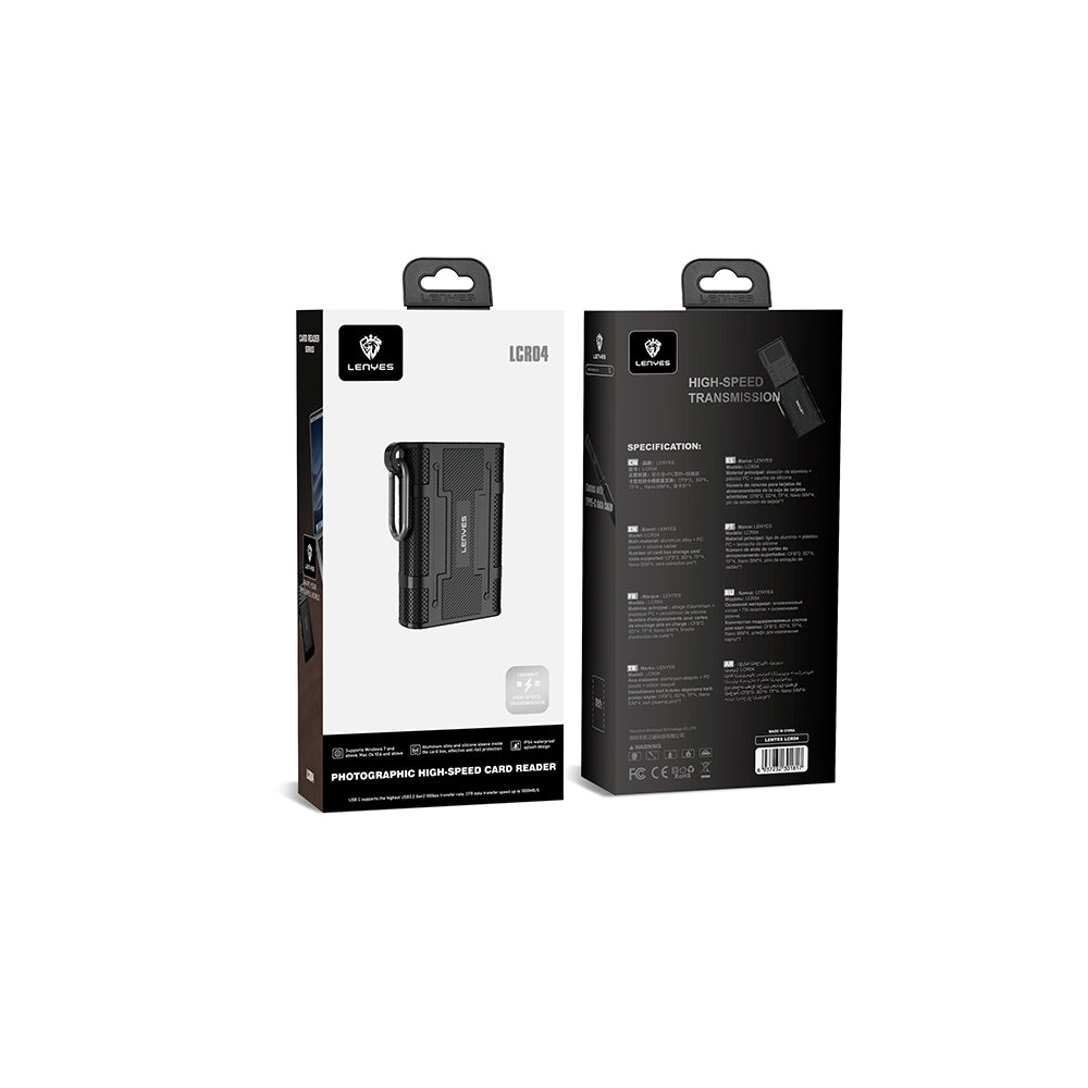 Lenyes LCR04 Type-C Kablolu Su Geçirmez Çoklu Kart Depolama ve Okuyucu Kutusu 10 Gbps Siyah