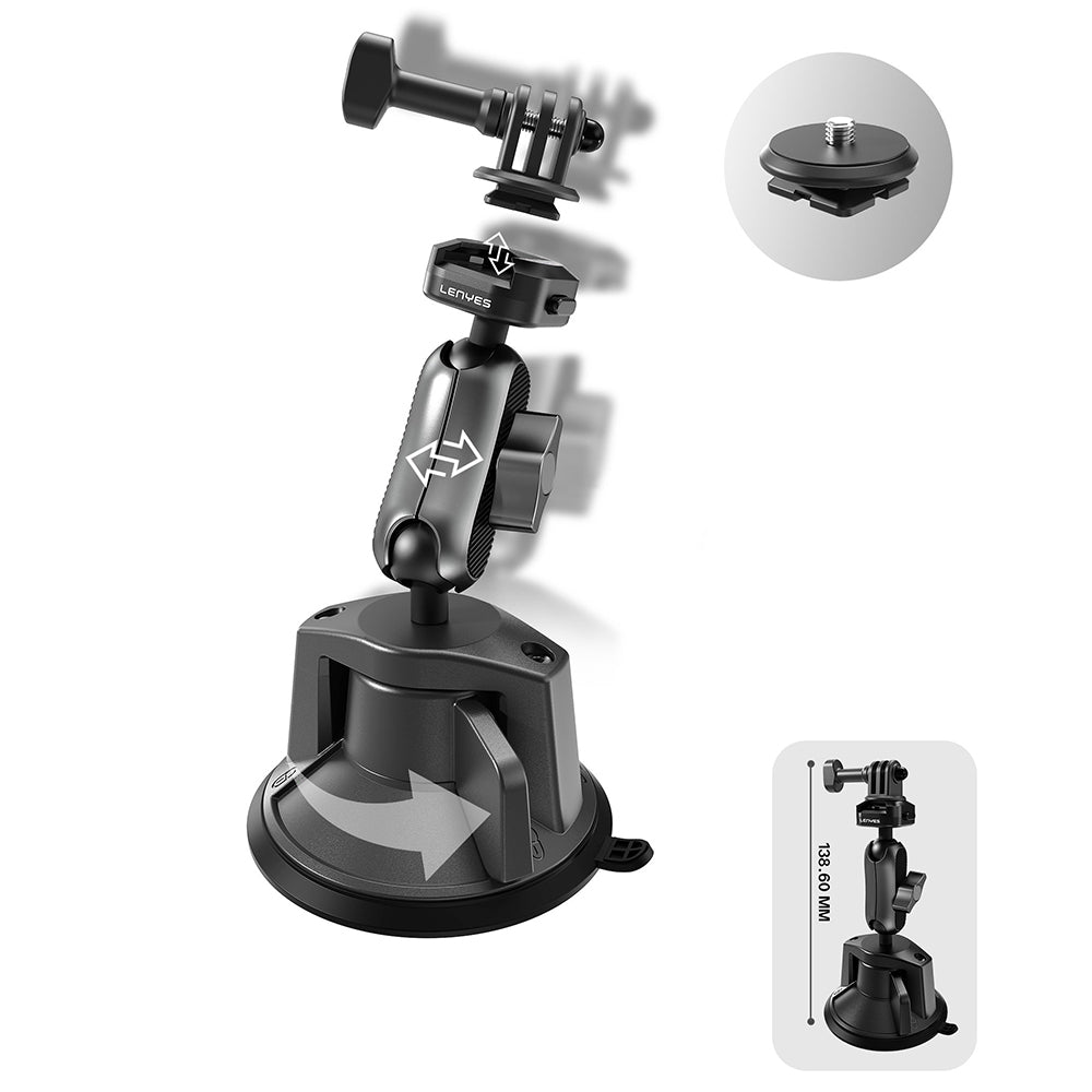 Lenyes LCT102 Teleskopik Vantuzlu Tasarım Aksiyon Kamera Tutucu