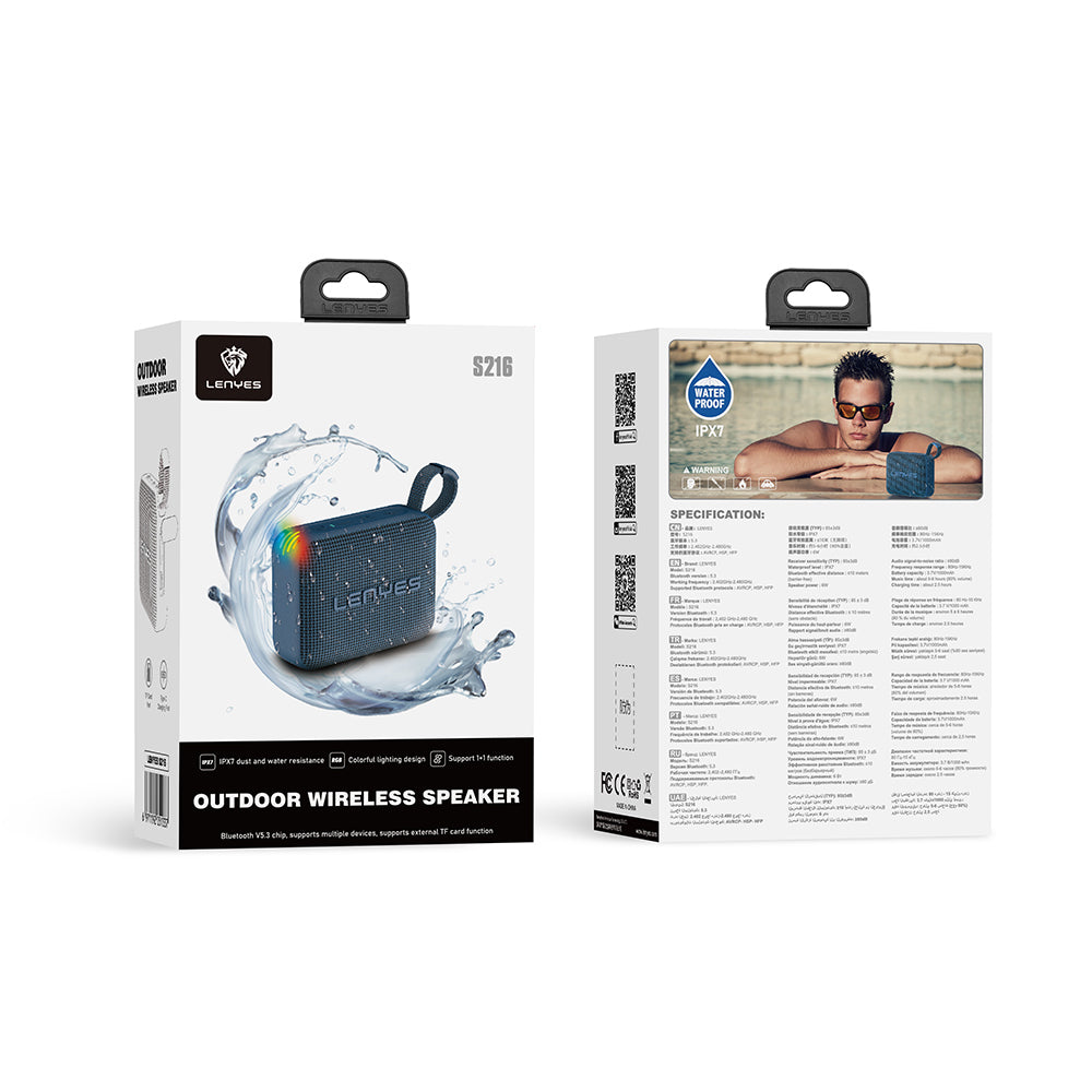 Lenyes S216 RGB ışıklı mini Bluetooth hoparlör, renkli aydınlatma tasarımı ile müziğinizi hem işitsel hem de görsel bir deneyime dönüştürür. Kompakt ve hafif tasarımı sayesinde istediğiniz yere kolayca taşıyabilir, arkadaşlarınızla keyif dolu anlar yaratabilirsiniz.