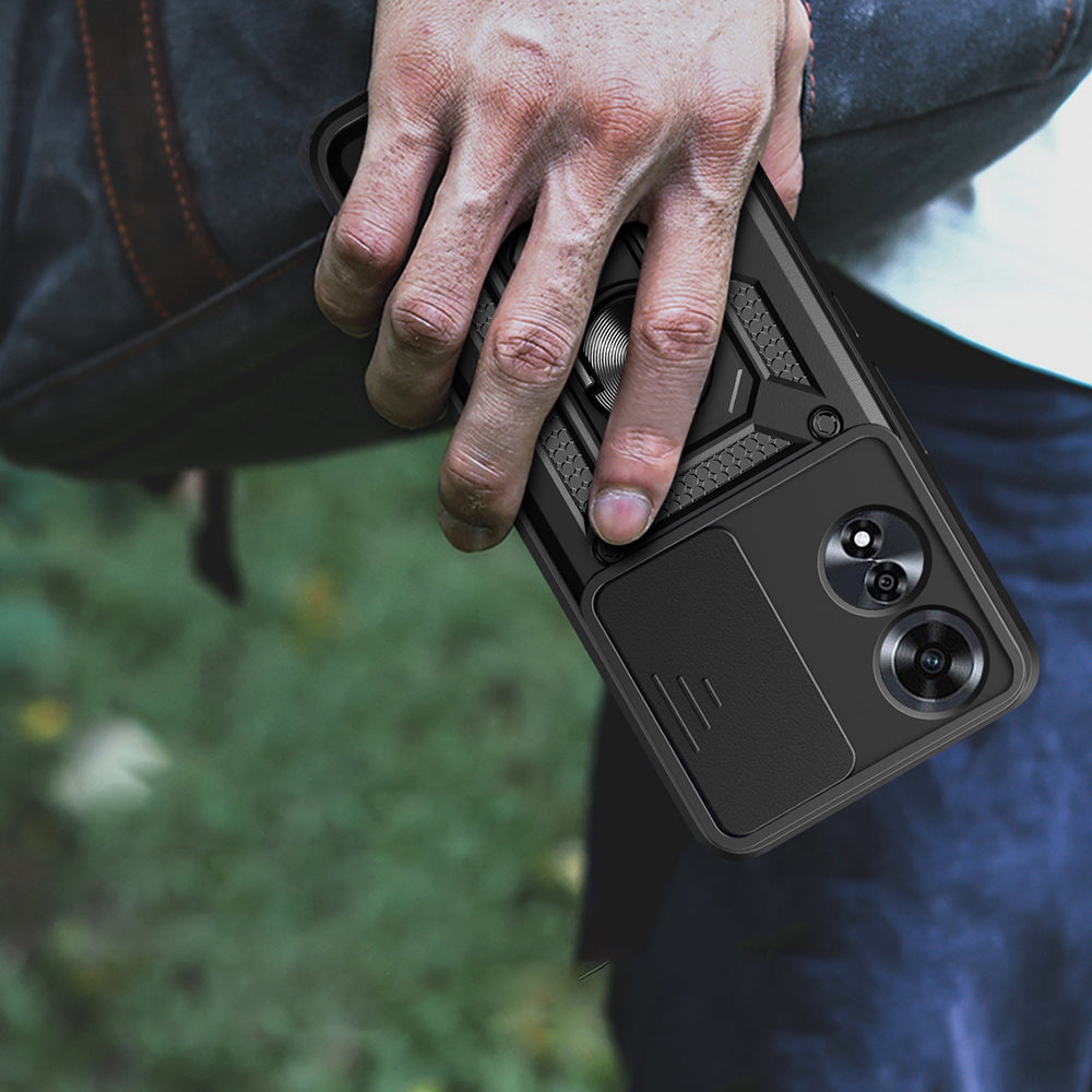 Oppo A60 Kılıf Magnetik Standlı Kamera Korumalı Zore Sürgülü Vega Kapak Siyah