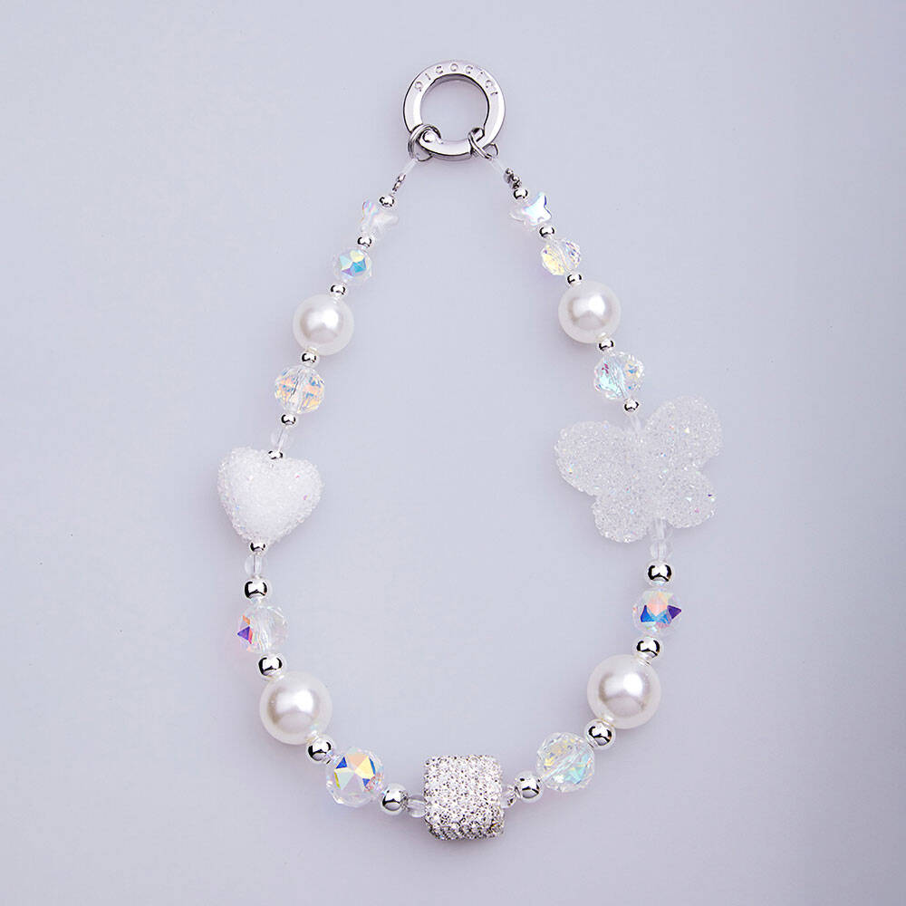 Picocici Siyah Taş Tasarımlı Üç Boyutlu Kelebek Telefon Bilek Askı İpi Beyaz