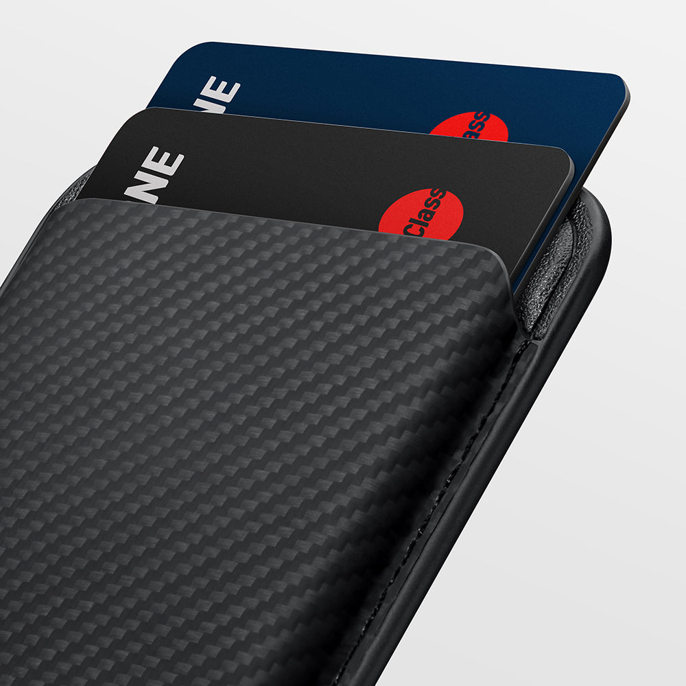 Sadece 38 gram ağırlığıyla neredeyse hissedilmeyecek kadar hafif olan bu kartlık, ultra ince yapısıyla telefonunuzun kalınlığını artırmadan kullanım sunar. Özel Cadmyra™ aramid fiber dokusu, hem dayanıklılığı hem de şık dokusuyla fark yaratır. Minimalist çizgilerle tasarlanmış yapısı sayesinde modern iş tarzınıza da mükemmel uyum sağlar. Günlük kombinlerinizle, toplantı stilinizle veya dış mekân aktivitelerinizle kolayca bütünleşir.