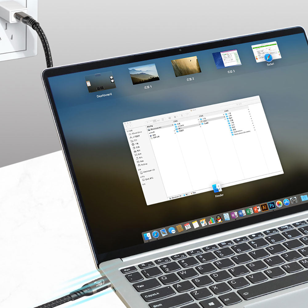 Qgeem QG01, şarj deneyiminizi bir üst seviyeye taşımak için tasarlandı! Bu hızlı şarj kablosu, Thunderbolt 3, USB-C ve DisplayPort cihazlarınıza video ve veri göndermek için herhangi bir USB-C'ye bağlanmanızı sağlar.